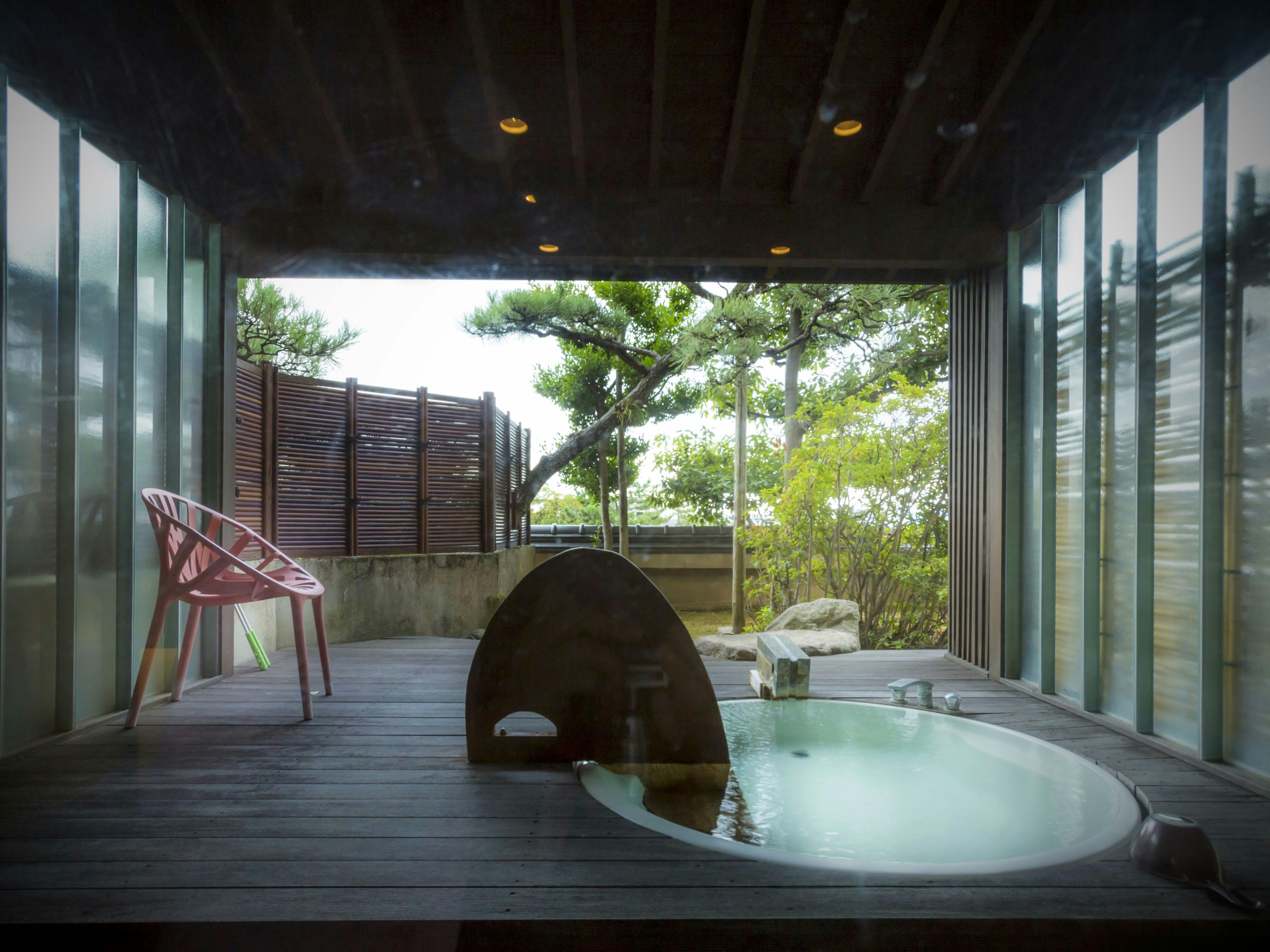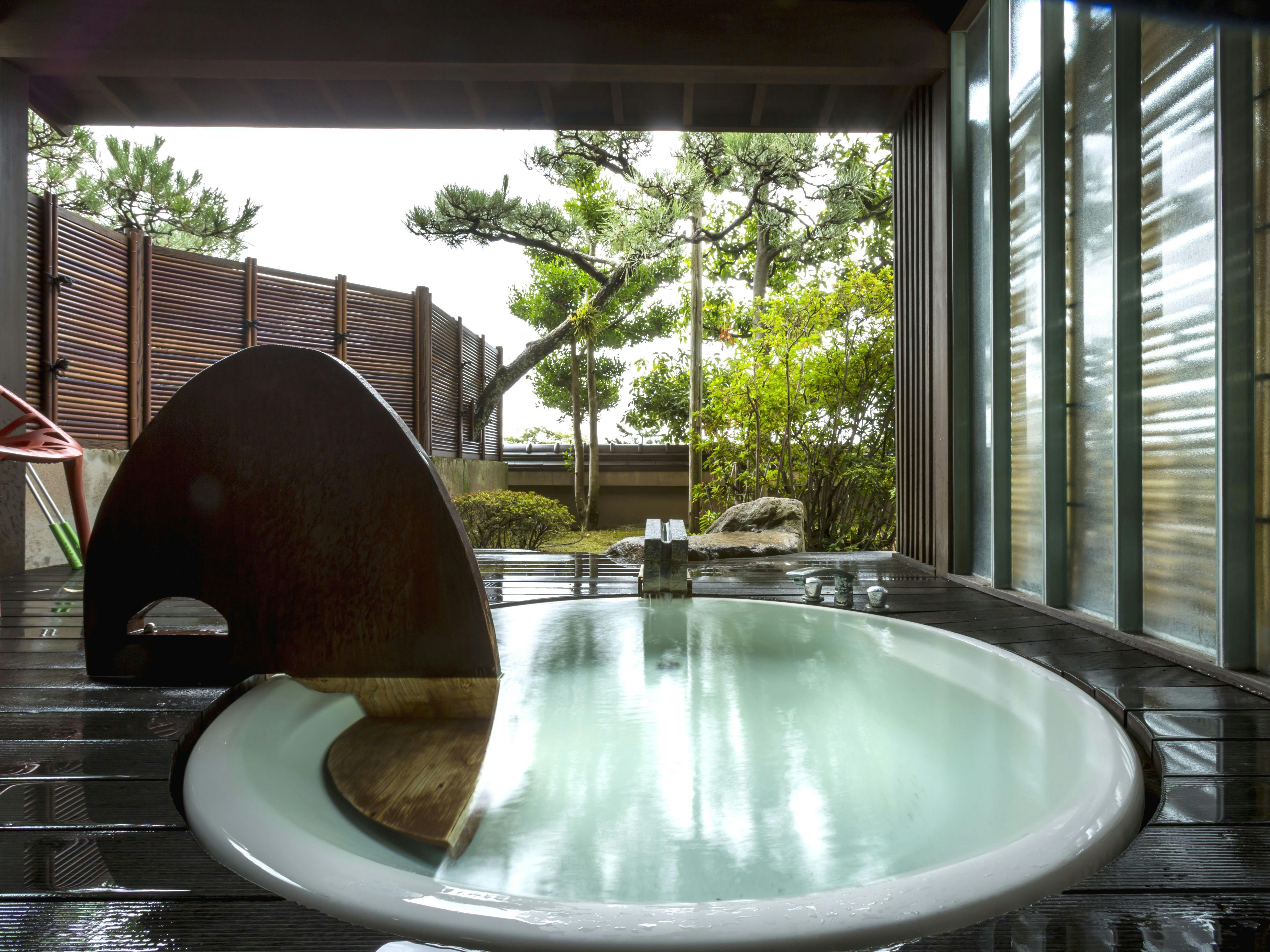 明治16年創業。敷地内に4本の源泉井戸を保有し、あわら温泉の中でも特に豊富な湯量を誇る温泉は夜通し入浴可能。夜にライトアップされる日本庭園は、幻想的で、気兼ねなく、心地のいいひとときを過ごせる宿。