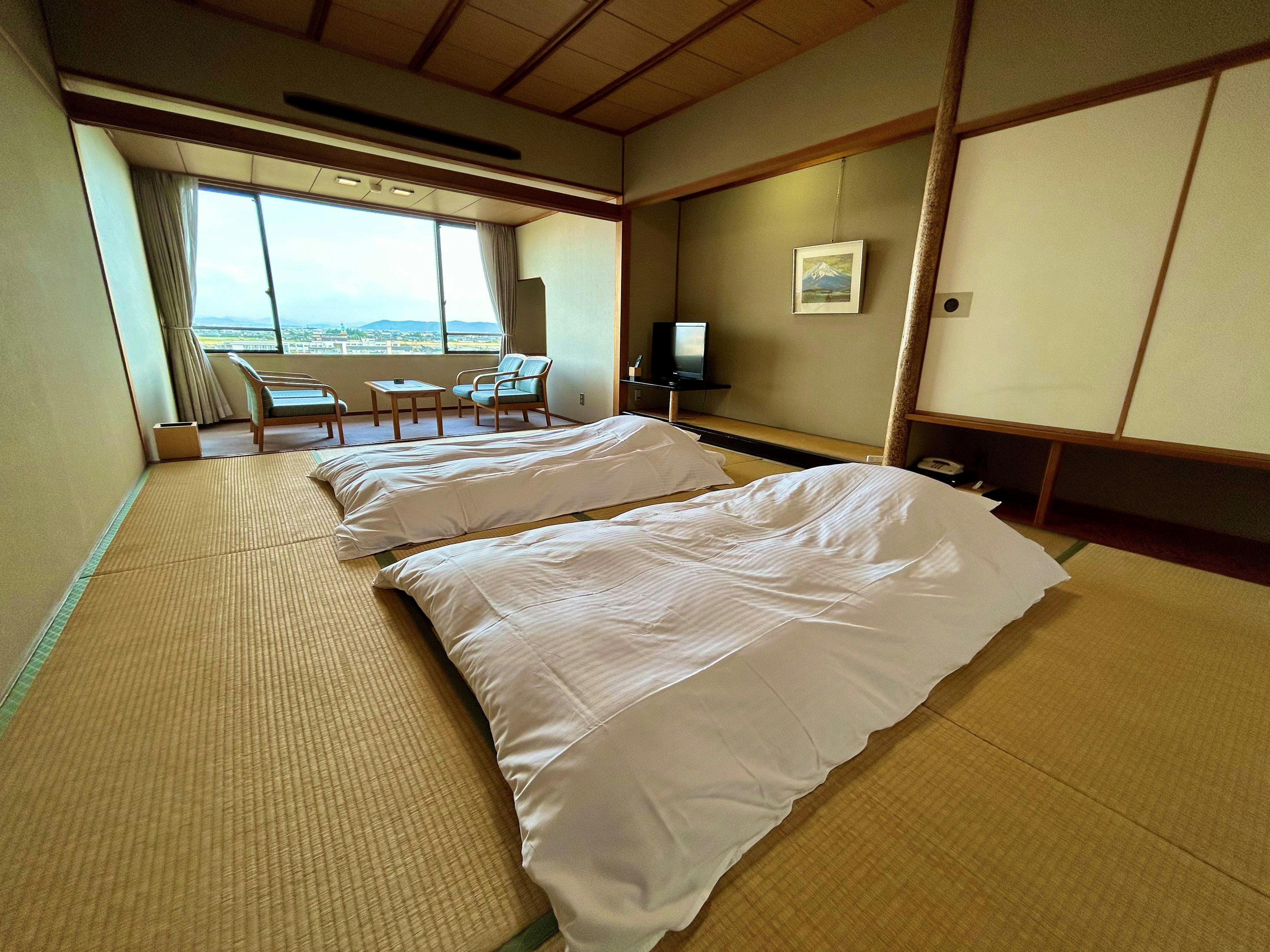 特別室は【本間(12畳)+リビングルーム(約8畳)+広縁+ホテル唯一の温泉露天風呂付特別客室