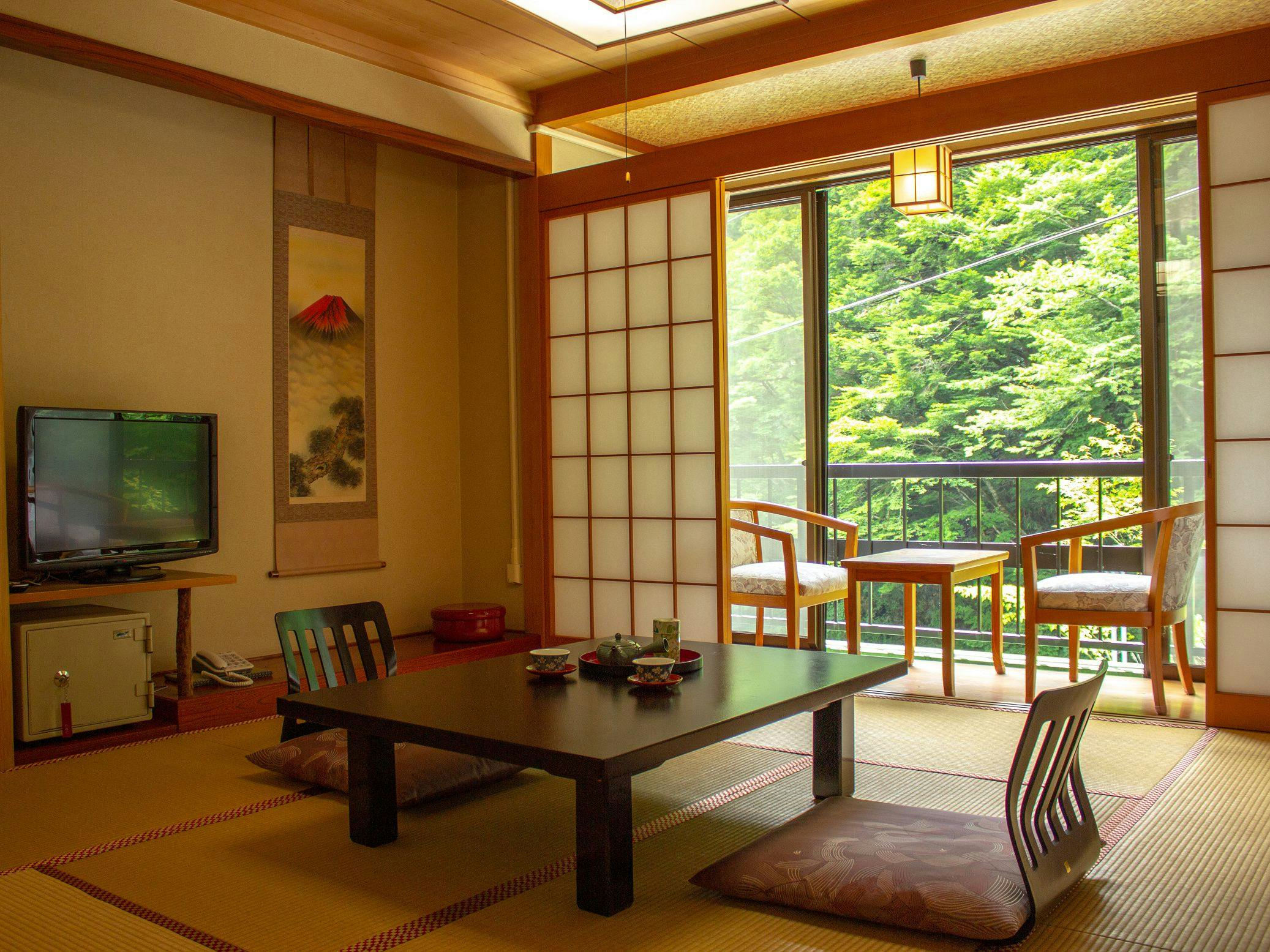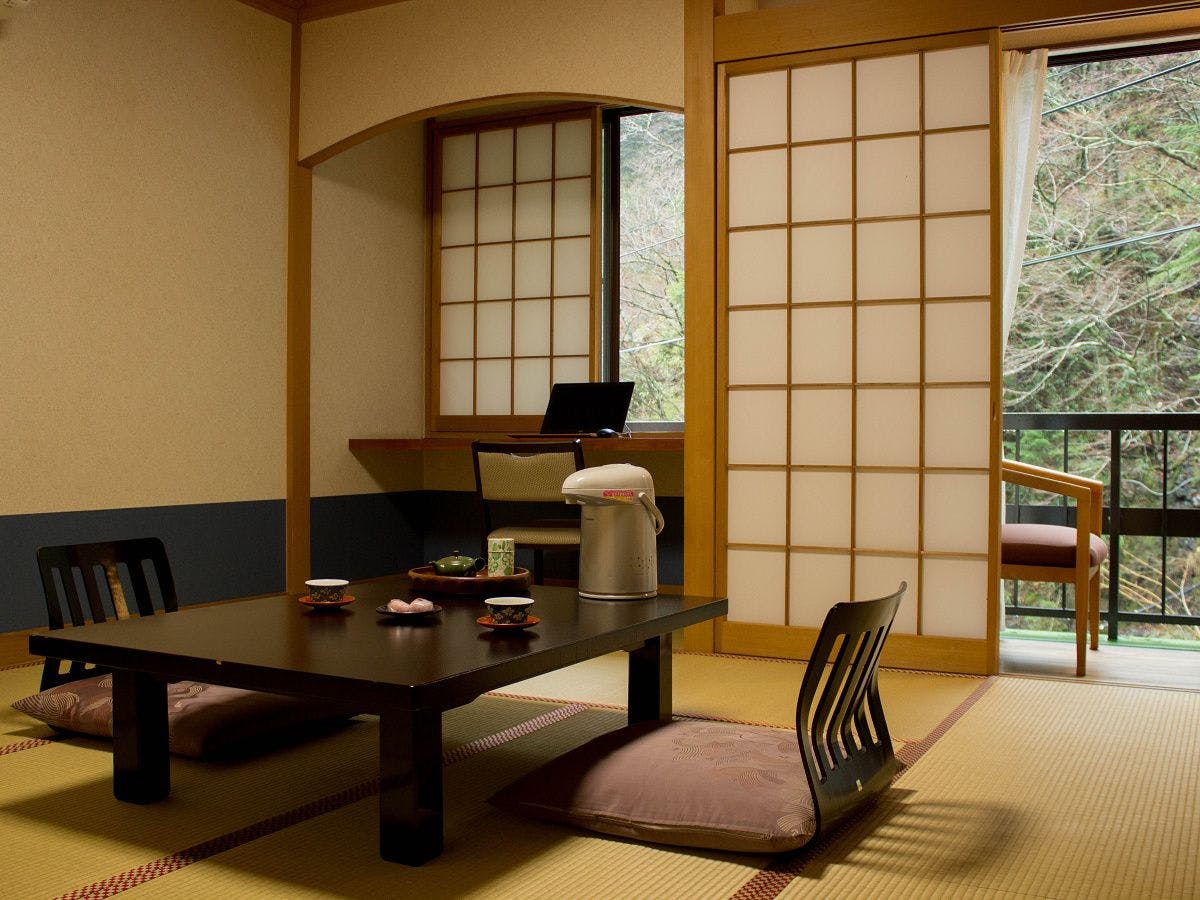 安倍川の渓流を眺めるトイレ(温水洗浄器付き)洗面付きの客室が4部屋ございます。