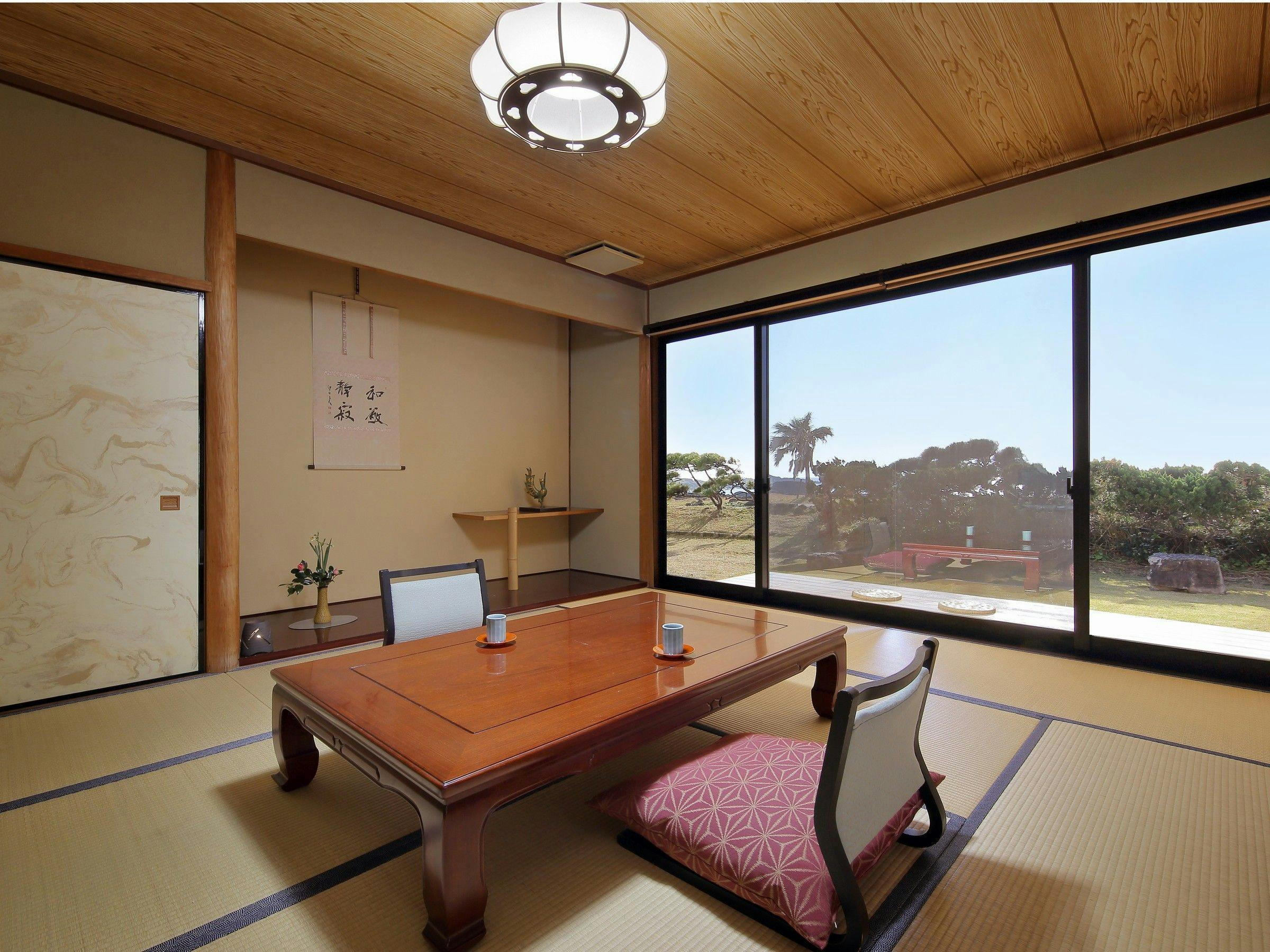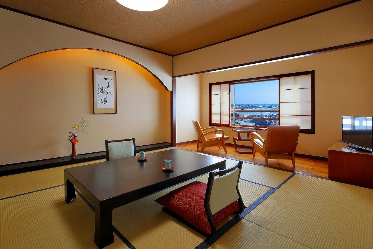 和室10畳と6畳の二間続きのタイプです。三世代やお仲間同士でのご利用に最適。別部屋でお子様を先に寝かせて、ご夫婦でゆっくり過ごされるのも良いですね。赤ちゃん連れのお客様には、ネントレ対応の部屋です。もちろん、目の前は広々とした太平洋。眺望も自慢です。