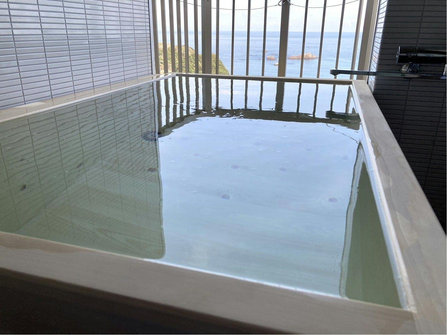 2022年9月にリニューアルされた特別室(12.5畳+4.5畳+3畳)露天風呂(寝湯)付きです。【寝湯】リラックスでき、鎮静、鎮痛、催眠の改善が期待できます。皮膚の血管がひろがって、血液やリンパ液の流れが良くなり、動脈硬化、高血圧、精神疲労、不眠症に効果があると言われています。美しい外浦海岸を眺めながらおくつろぎください。