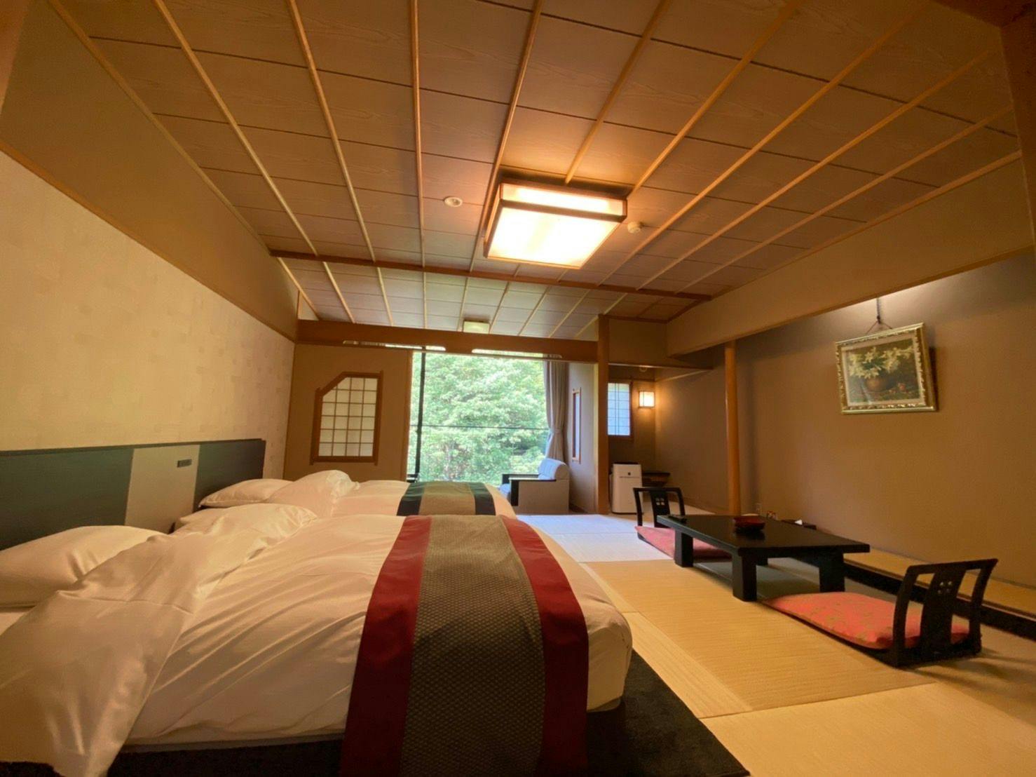 清流小川を臨み、せせらぎの心地よい音がきこえてくる、落ち着いた純和室のお部屋です。