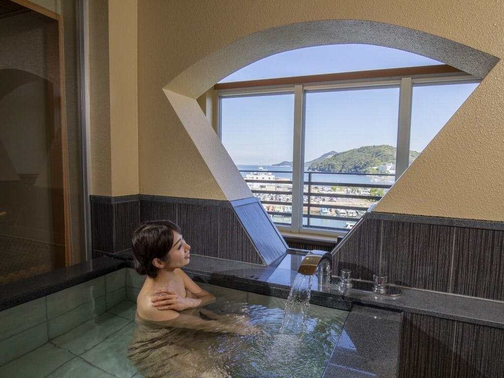海面40mの高さから、海を一望できる天空露天風呂付き客室
