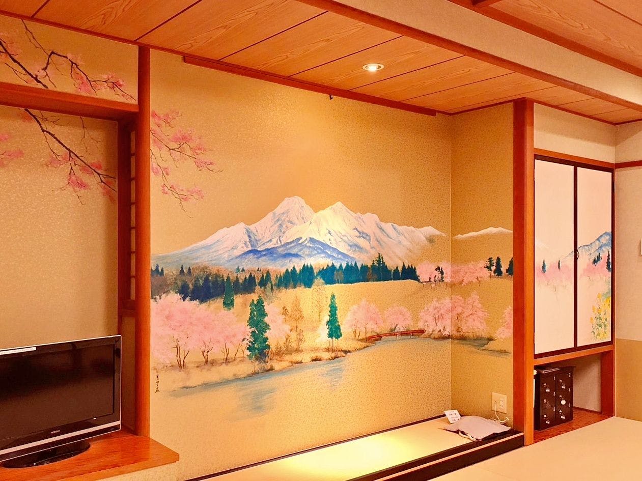 日本酒ラベルの書道家では世界も認める第一人者、小泉景鶴氏による絵画を施した特別室