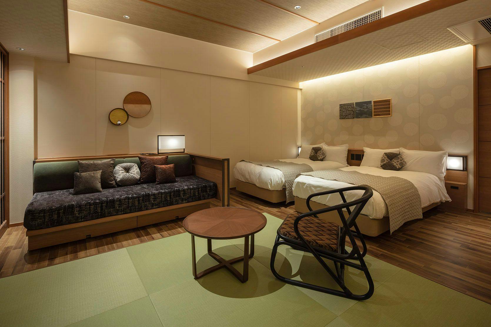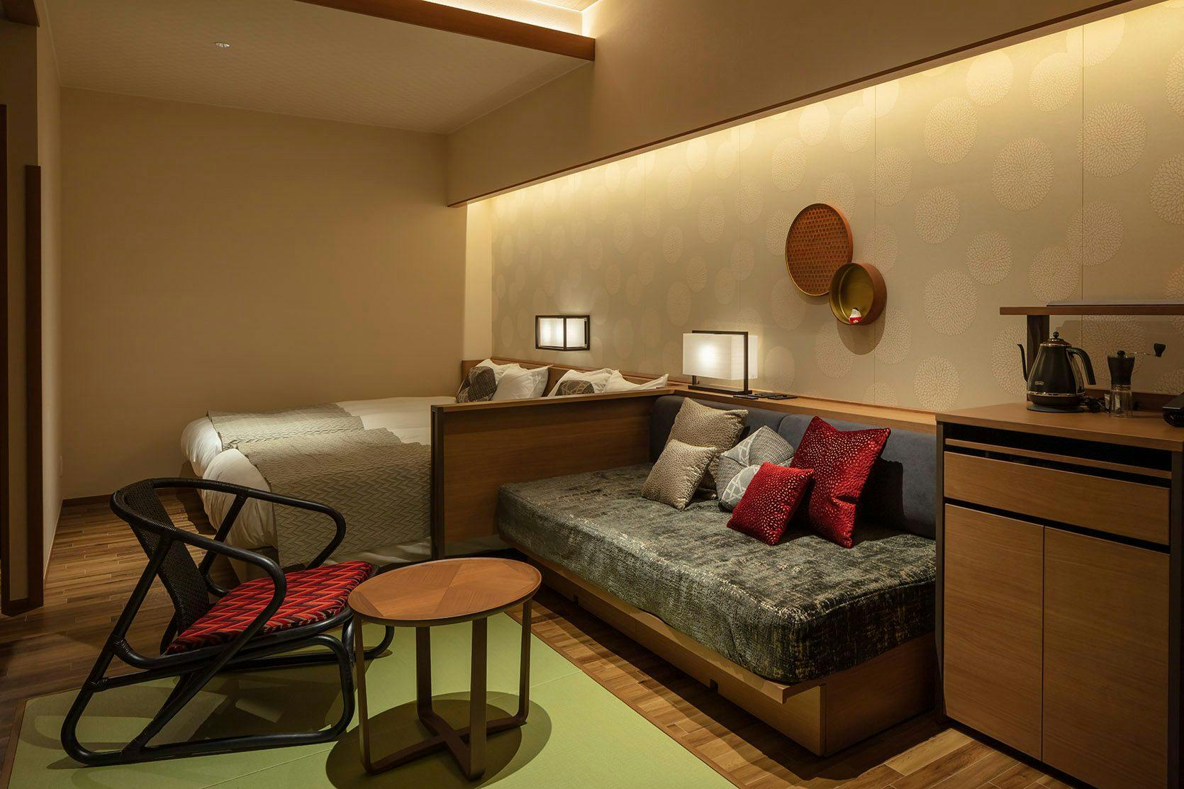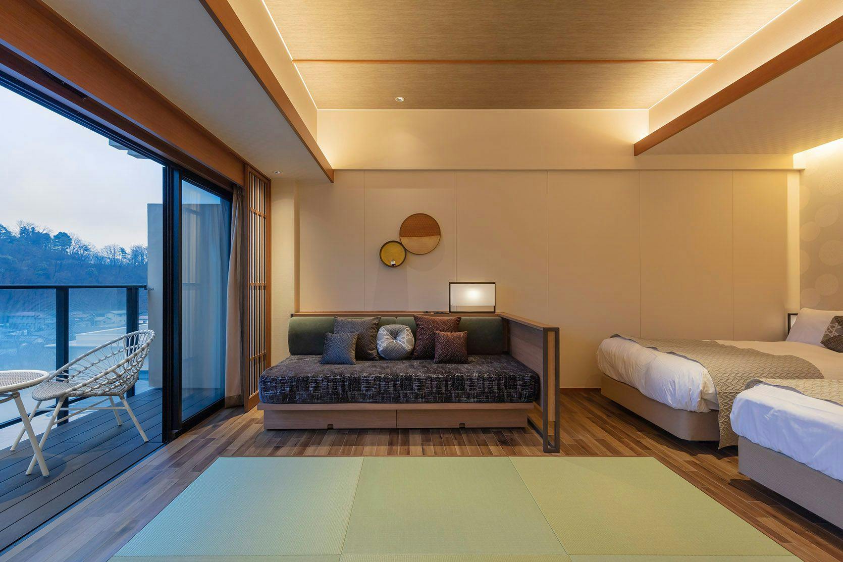 スタンダードでありながら広々とした空間にソファーベッドが特別感を演出します。ゆったりと落ち着いた畳スペースは様々な利用シーンに対応し、旅の楽しみも膨らみます。