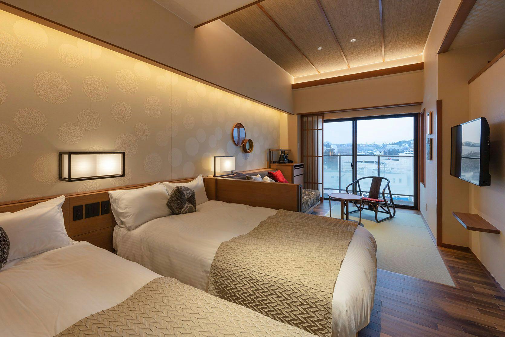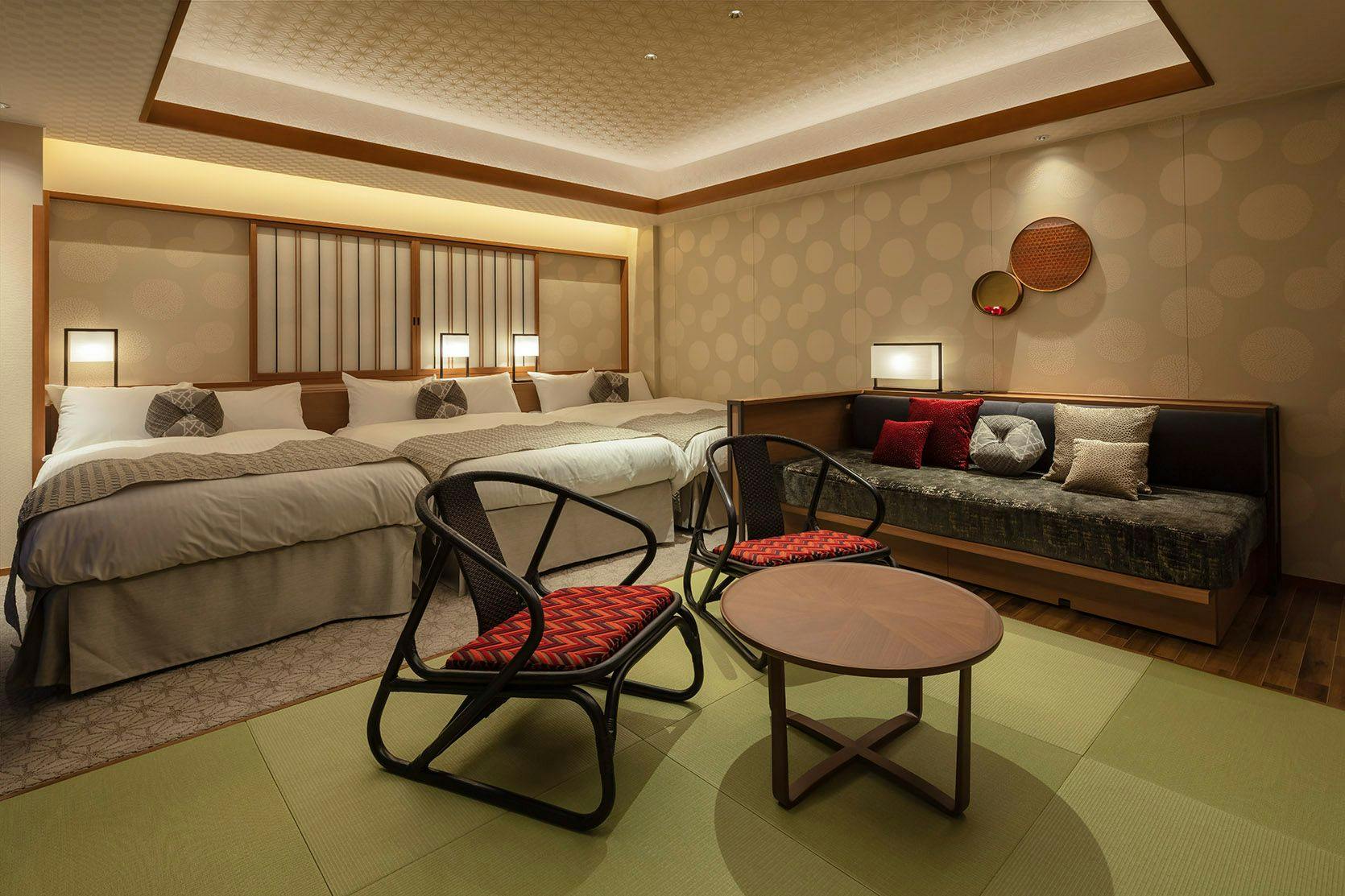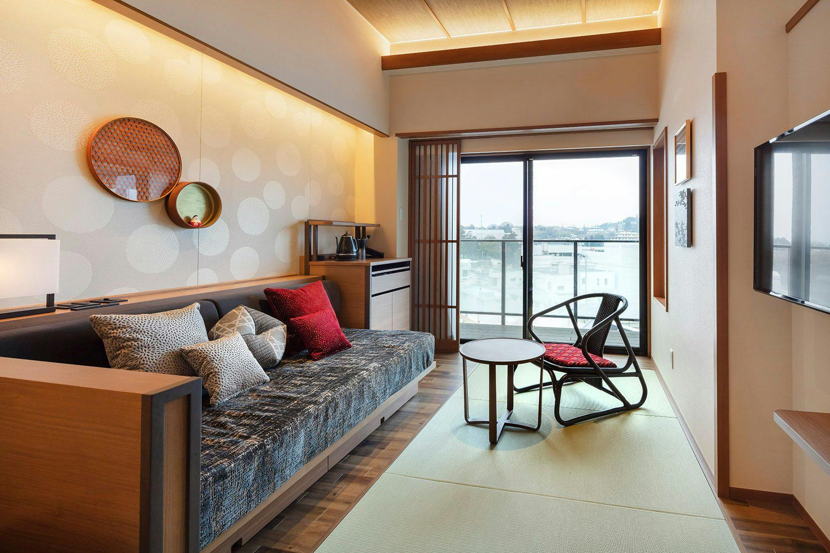 スタンダードでありながら広々とした空間にソファーベッドが特別感を演出します。ゆったりと落ち着いた畳スペースは様々な利用シーンに対応し、旅の楽しみも膨らみます。