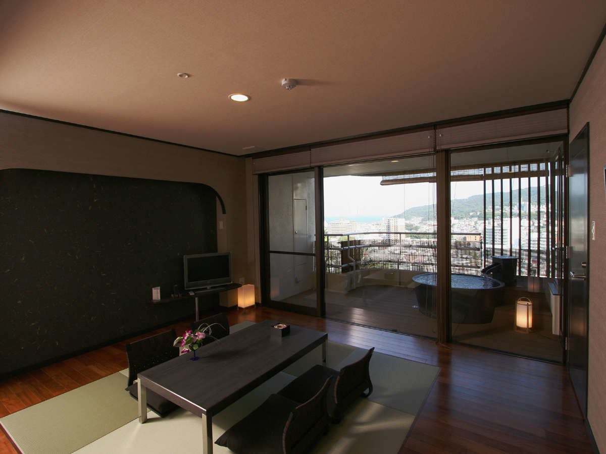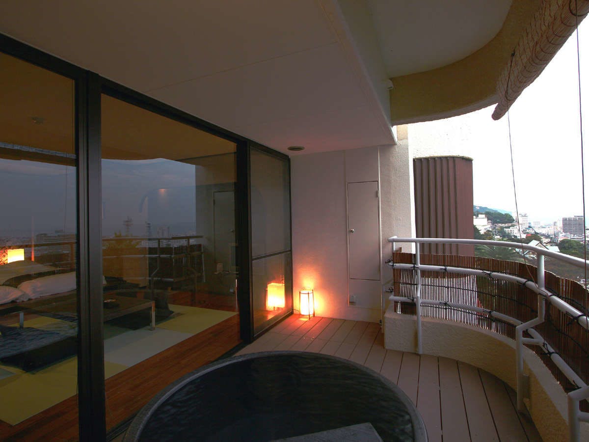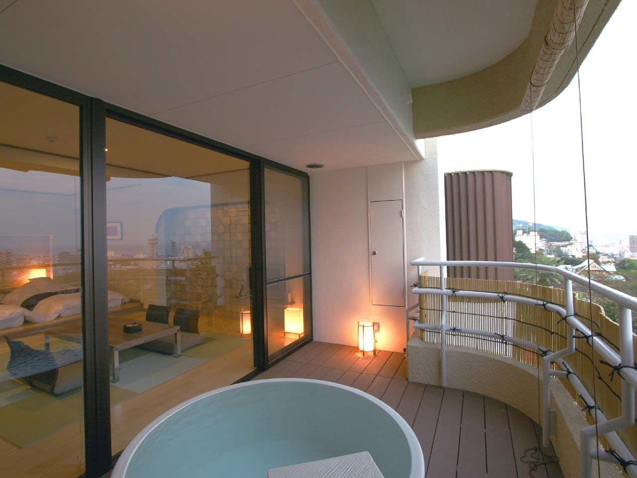 あなたは、どのタイプ自然派・都会派・異国派伊東の夜空をひとり占めできる特別なお部屋ガーデンスイート館の最上階7F露天風呂からは相模湾を一望。