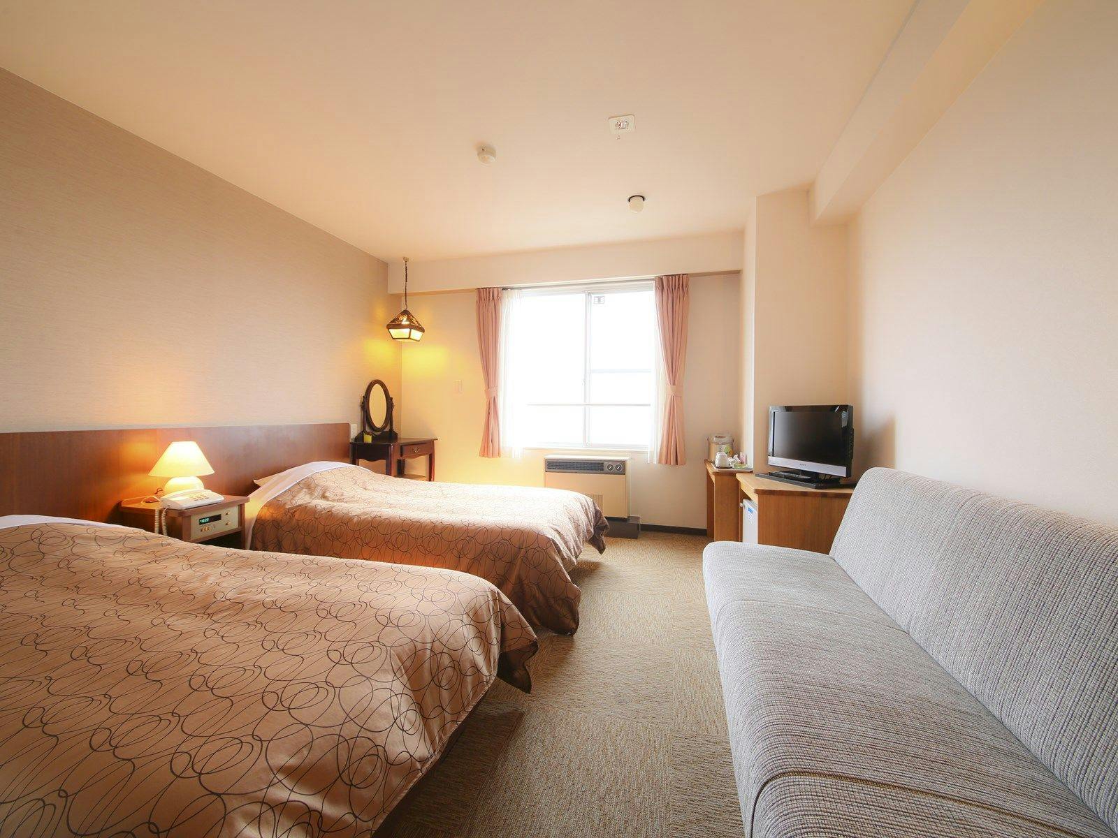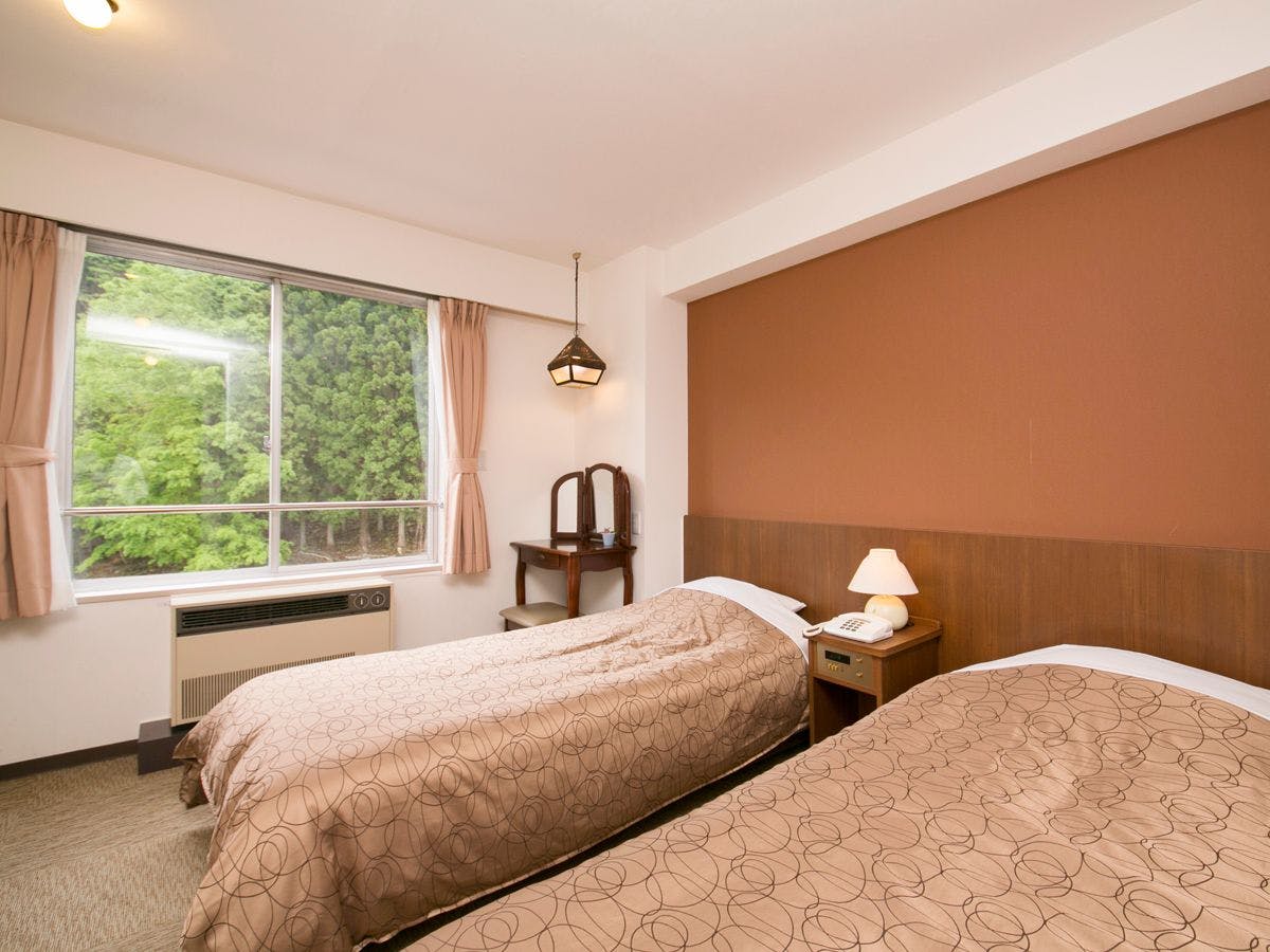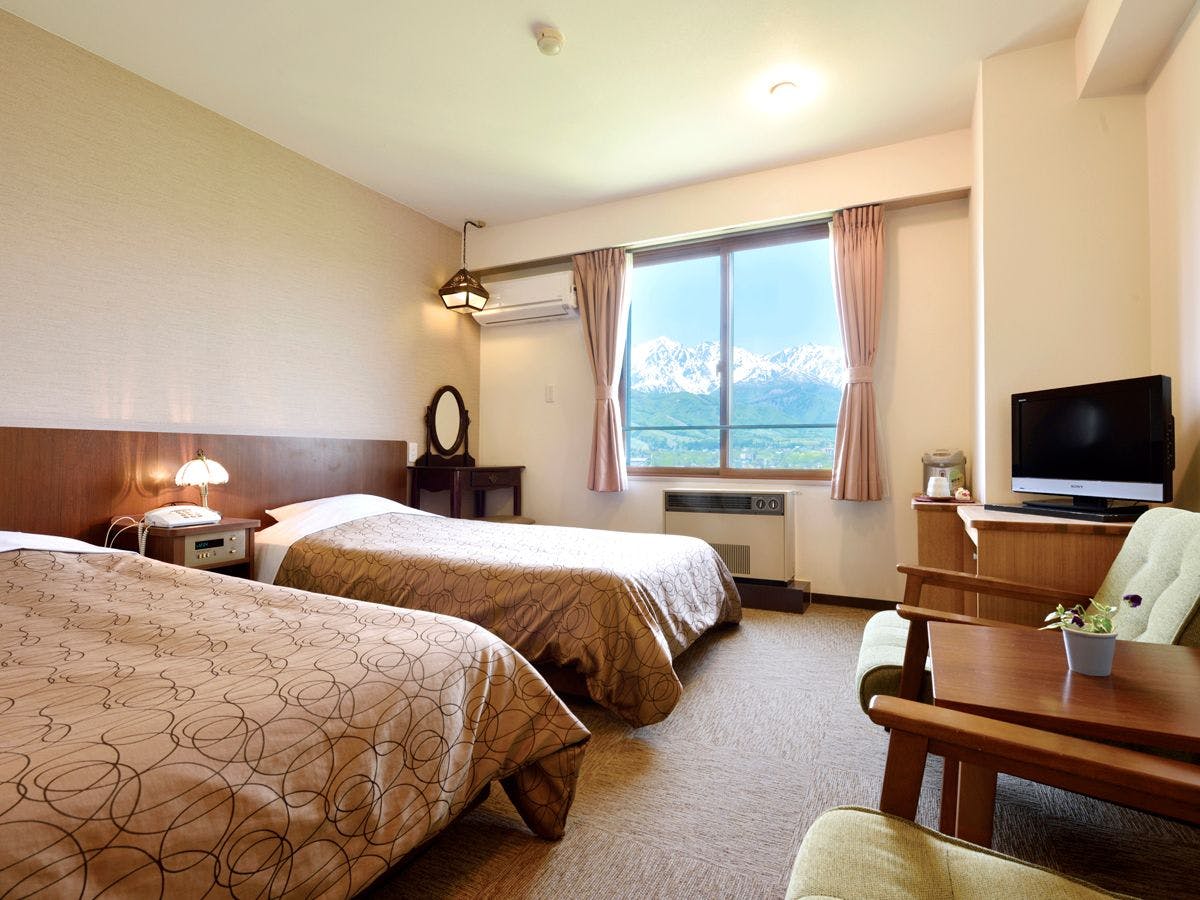 お部屋から北アルプスはご覧いただけませんが、景色以外の広さ・設備は、他の洋室ツイン部屋と同じです。
