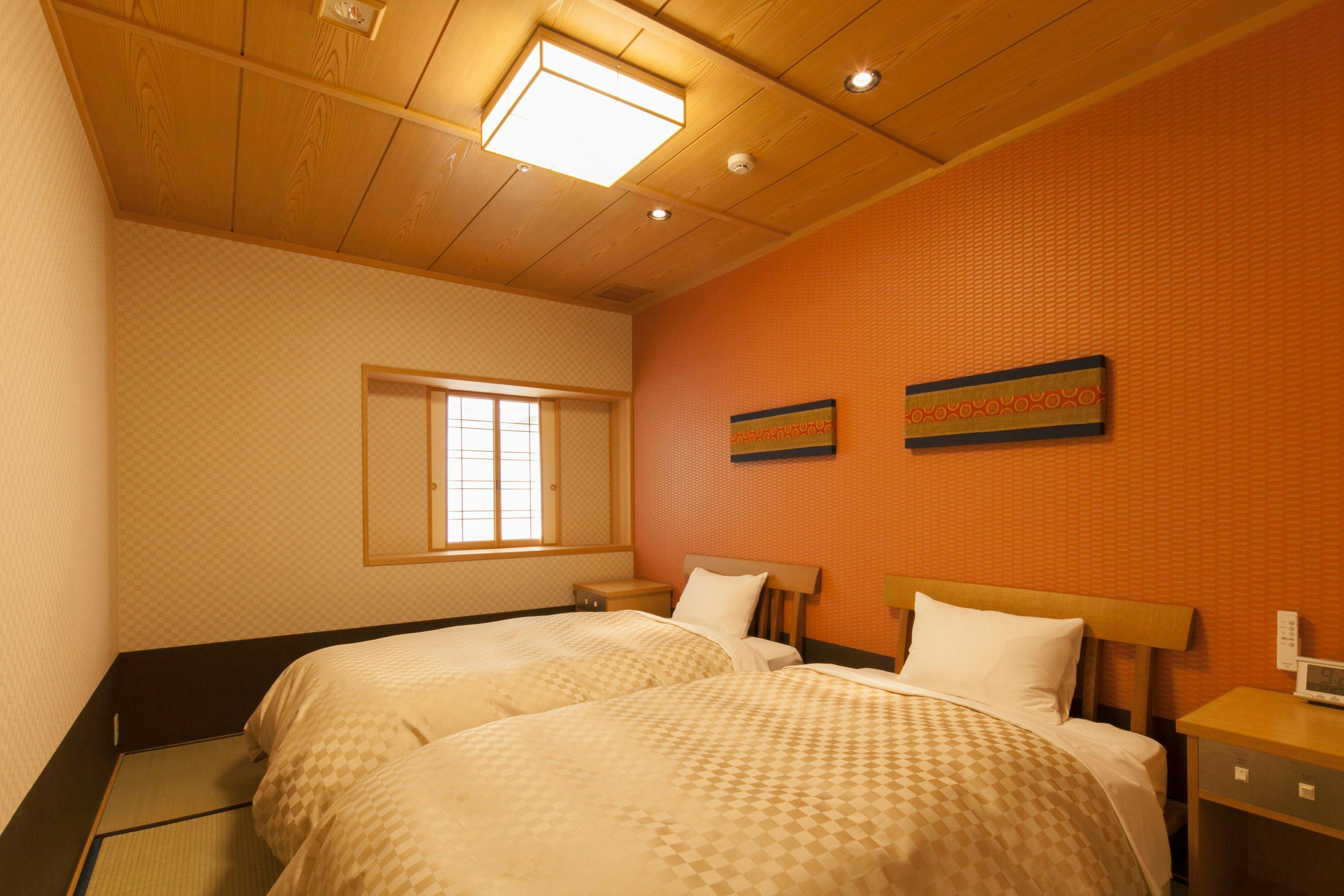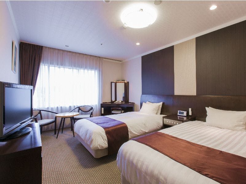 ・27平米のツインベッドタイプ・温水洗浄付トイレ/ユニットバス・インターネット 有線LAN・Wi-Fi完備館内2箇所の温泉大浴場もご利用下さいお部屋着(甚平)でホテル内全てOKホテルであって旅館のお寛ぎを実感できます