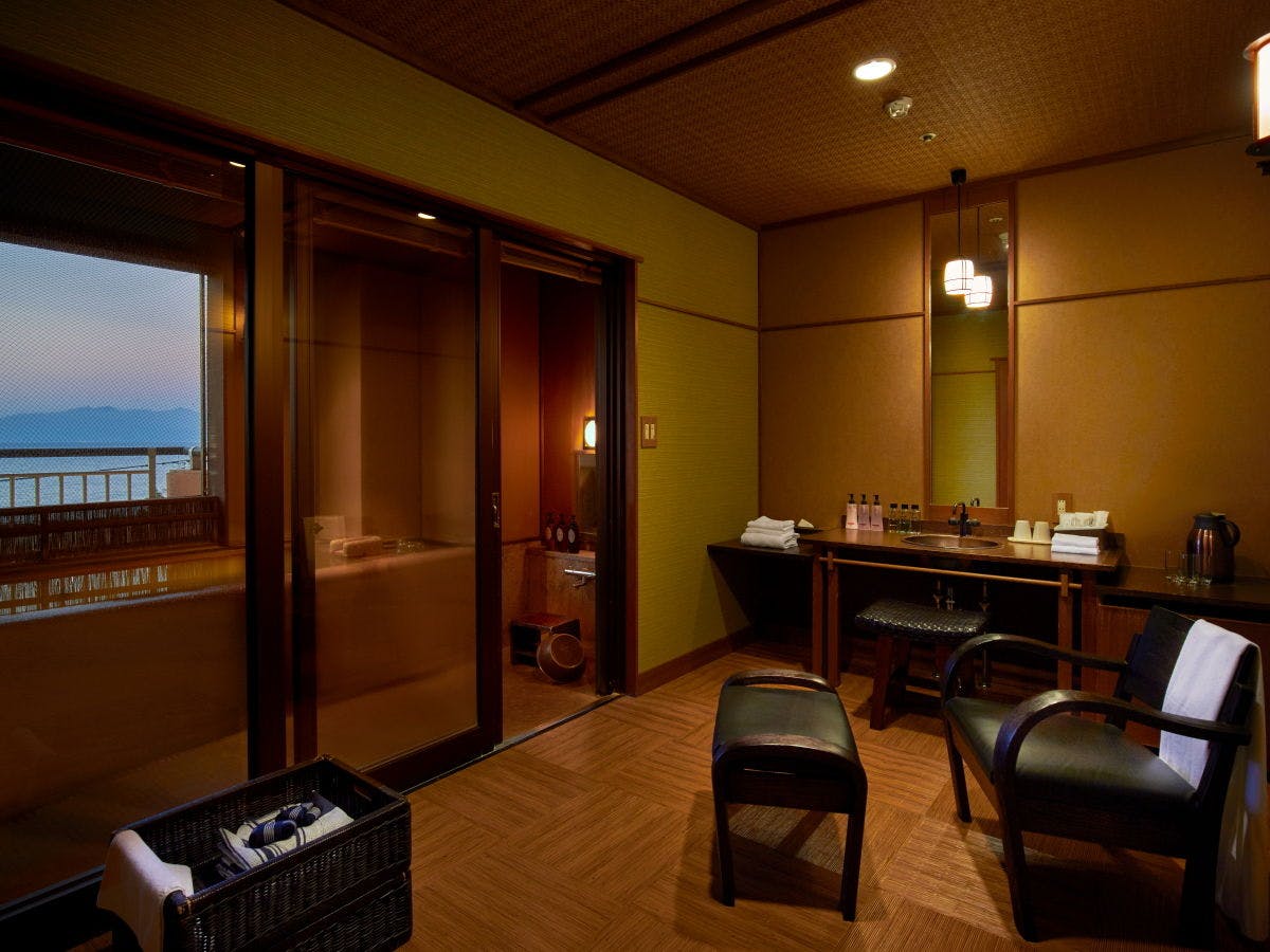 桜島を望むシャワーブース付和室