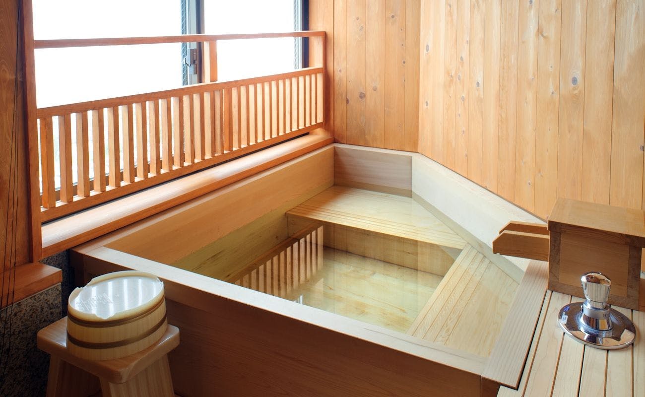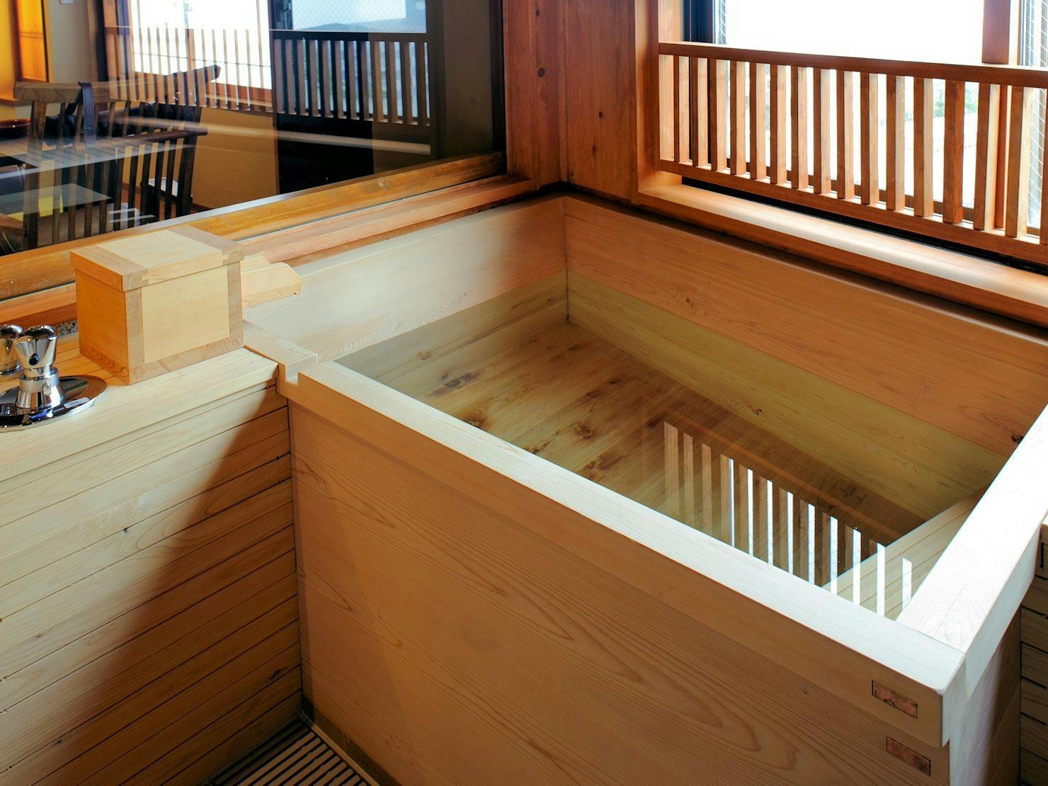 温泉付のお風呂とトイレを備えた客室です。2022年12月に改装いたしました。お部屋でゆっくりと温泉をお楽しみいただけます。窓から外を眺められるお風呂です。お食事は個室お食事処でご準備いたします。温泉付特別室に限り、0歳~小学生のお子様を含むご予約はお受けしておりません。
