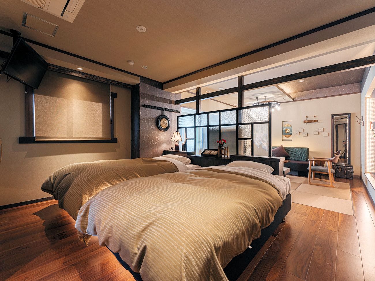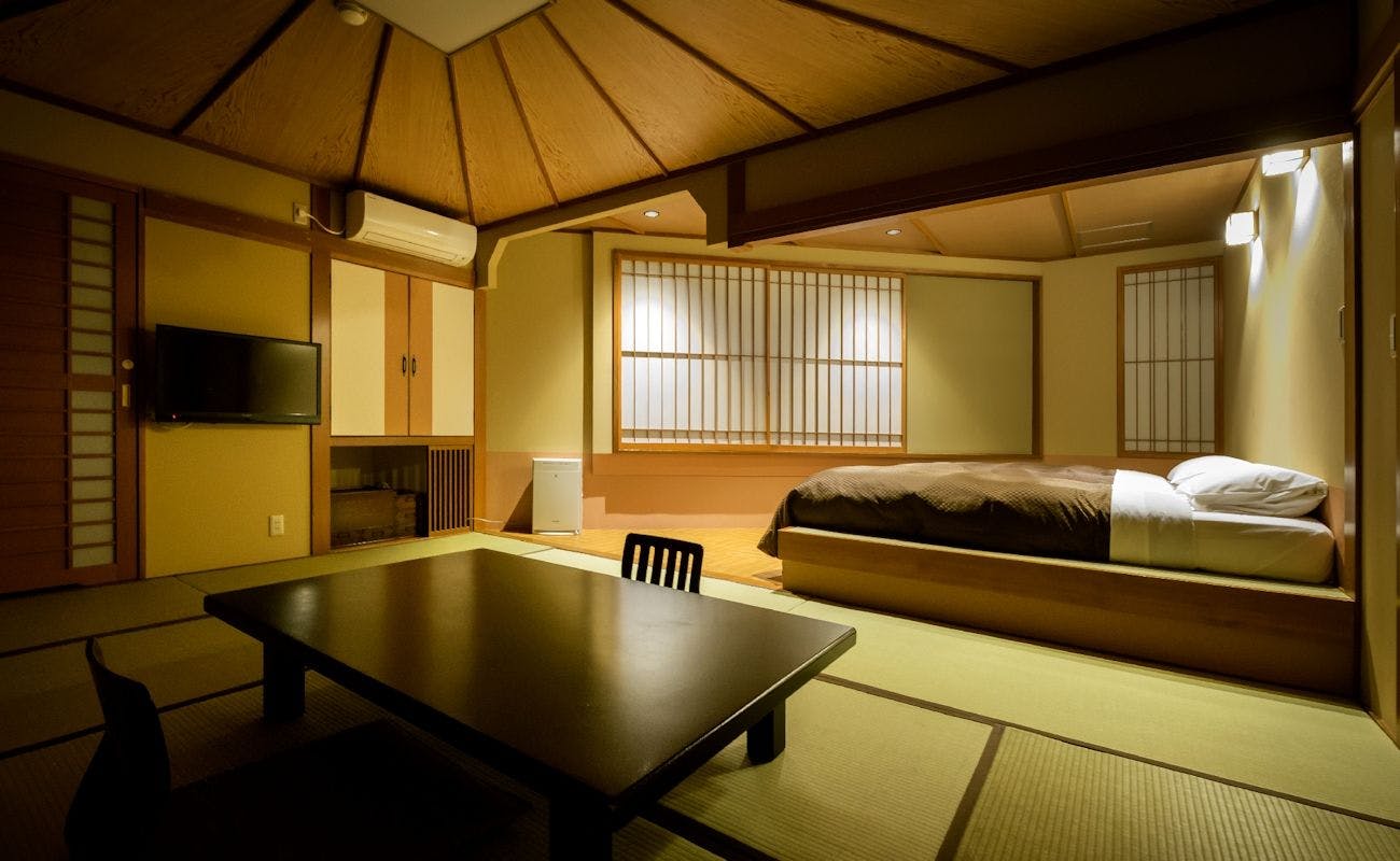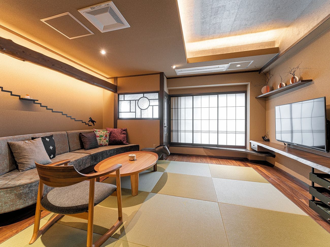 シャワーとトイレがありますスタンダードタイプの和室です。プライベートなお籠もり滞在からご家族・小グループまで気兼ねなくお寛ぎいただけます。