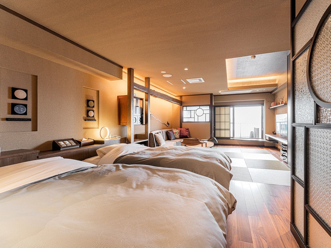 温泉付のお風呂とトイレを備えた客室です。2021年12月に改装いたしました。20畳の広めのお部屋です。お部屋でゆっくりと温泉をお楽しみいただけます。外が見えるような露天風呂ではございません。お食事は個室お食事処でご準備いたします。温泉付特別室に限り、0歳~小学生のお子様を含むご予約はお受けしておりません。