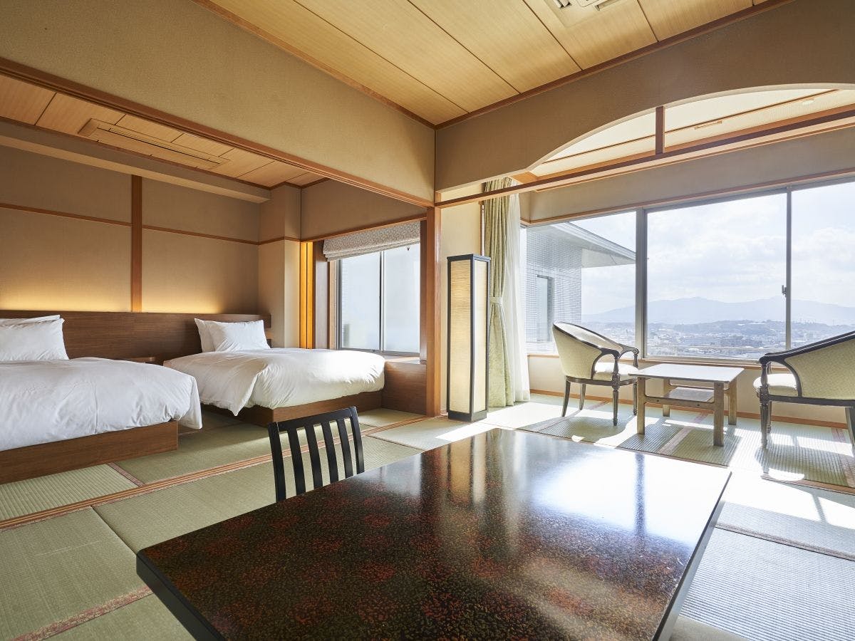 天然温泉と充実の設備が嬉しい玉名温泉街にある7階建のホテル。グループ施設のボウリング場やゴルフ場、西日本最大級の温泉リゾート「つかさの湯」も近隣にあり、楽しみ方は様々。歴史散策の拠点にも最適です。