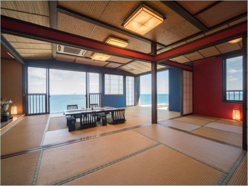 ●お部屋の前面が窓の為寝転んだままでも海を見渡せます。●<風>を仰ぎ、<月>を愛でる、趣の異なる粋な和の空間でございます