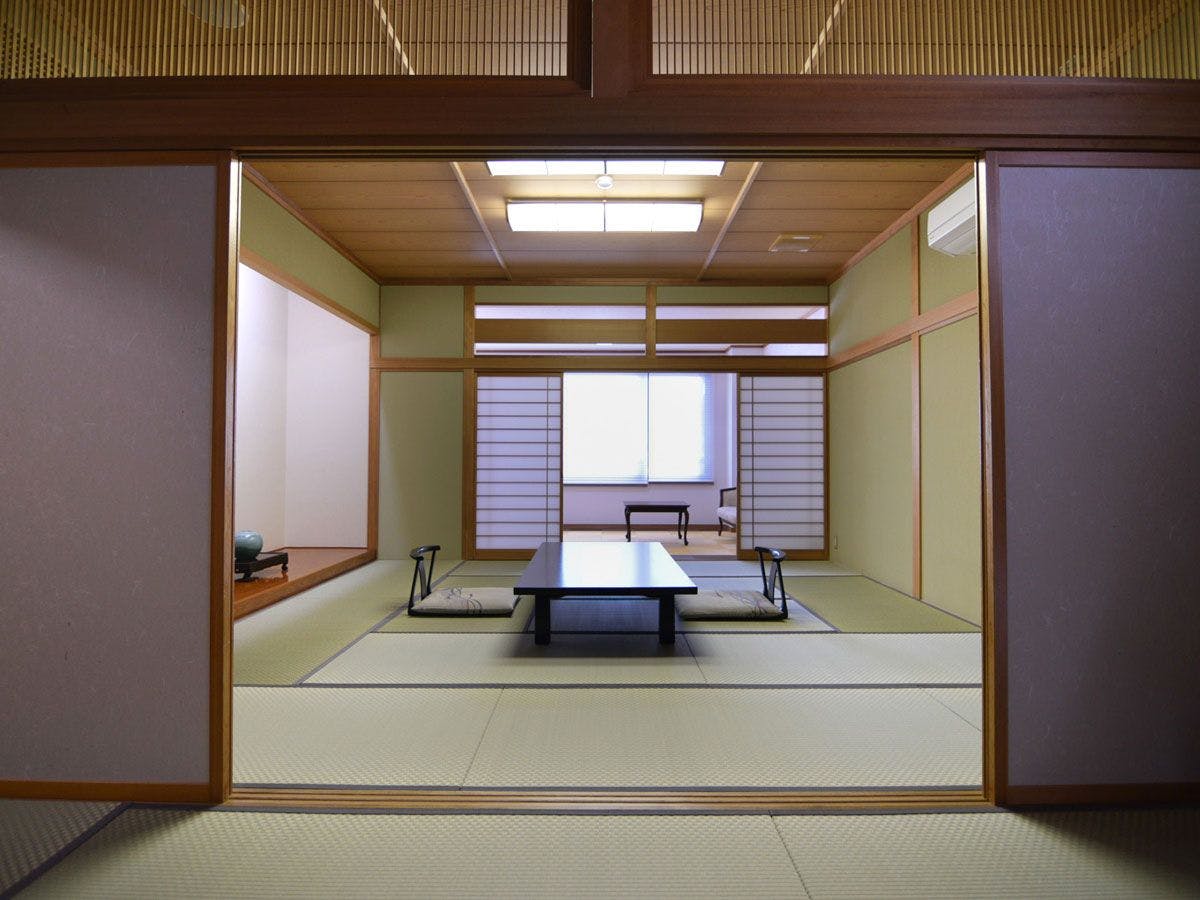 お部屋は、二間続きの広々空間(計20畳)に加え、リビングスペースを設けた広々した空間に。