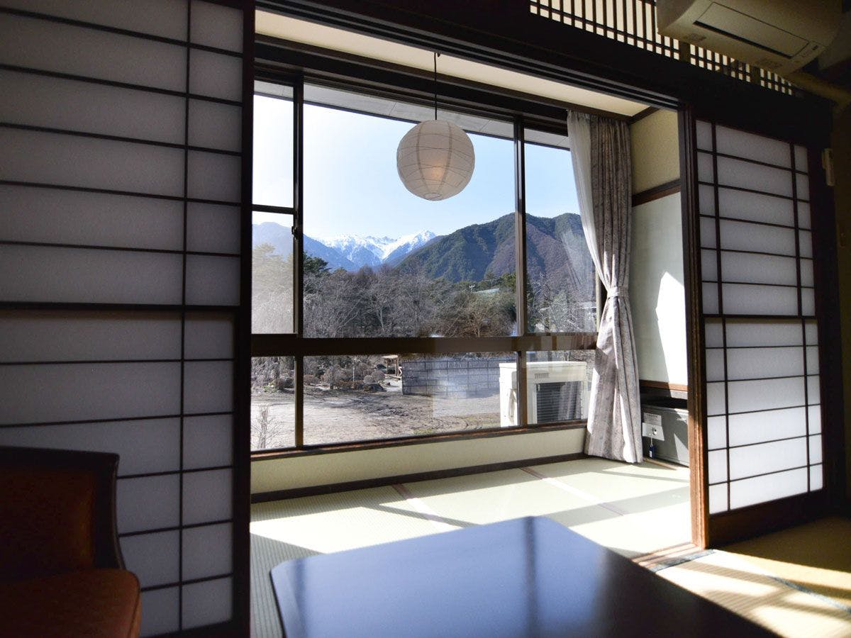 窓からは駒ヶ岳千畳敷カールをはじめとする中央アルプスの山並みをのぞめます。