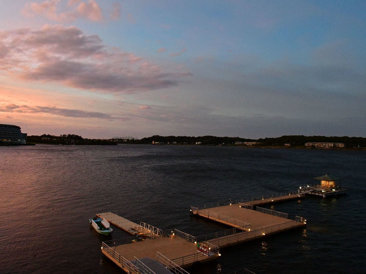 夕焼け、移り変わる湖畔の景観をひとり占め