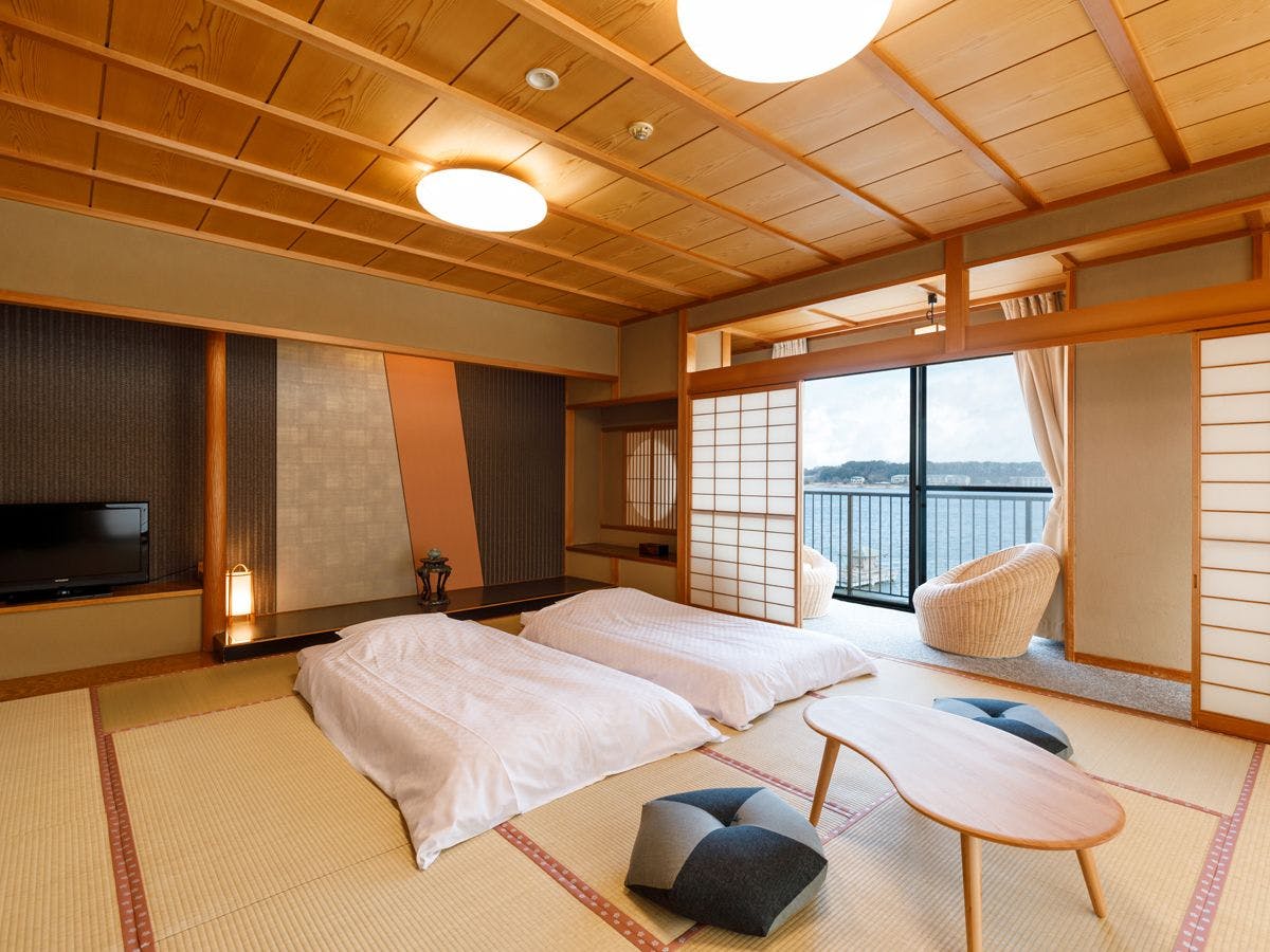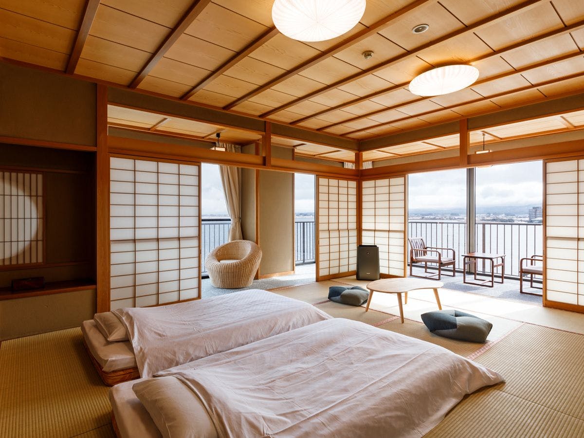 明治25年創業、1日に七度色を変えるという柴山潟のほとりに佇む純和風宿。北陸ならではの海や山の幸に口福舌福。温泉や客室から一面に広がる湖を眺め、寛ぎの時間を過ごしてください。
