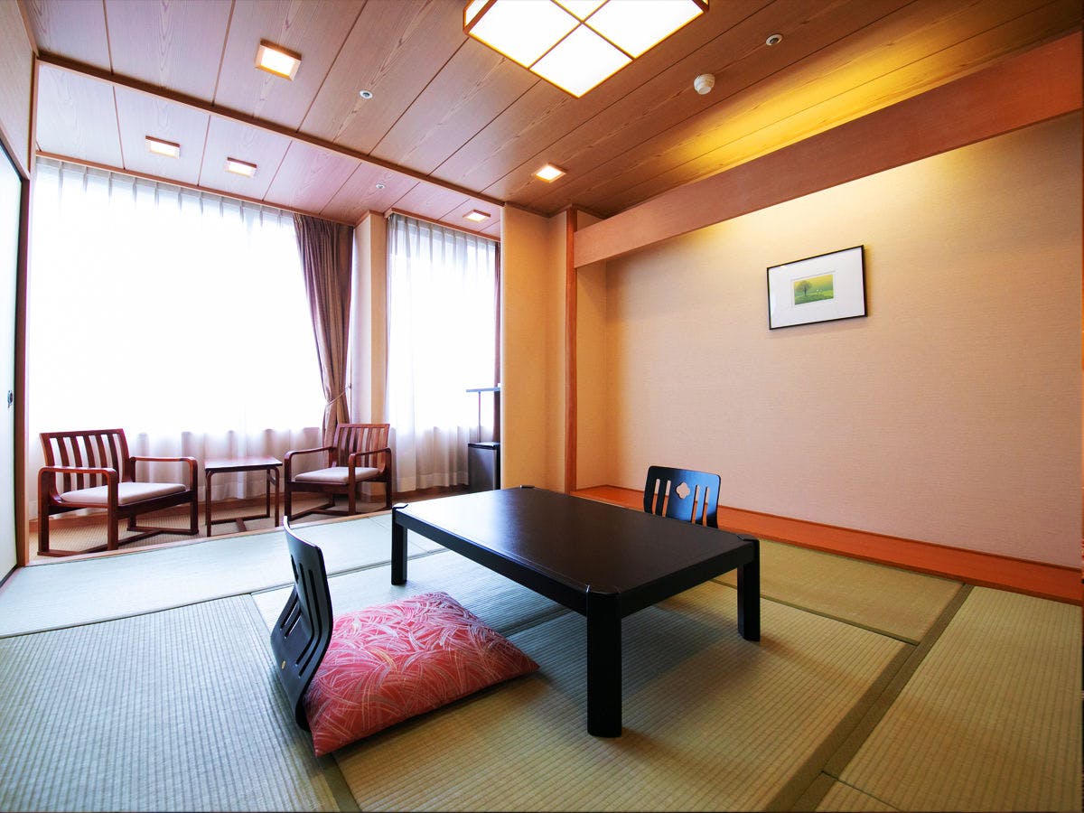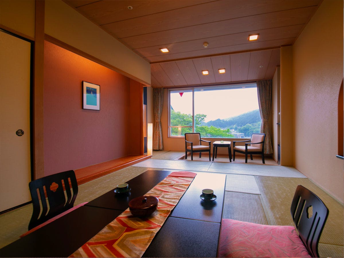 ・和室タイプの中でも最も広く、 大人数でも存分に手足を伸ばしておくつろぎいただけます・山側のお部屋につき、港のざわめきは控えめ。 お値段も抑えめの広々和室です。・喫煙フロアのお部屋です。