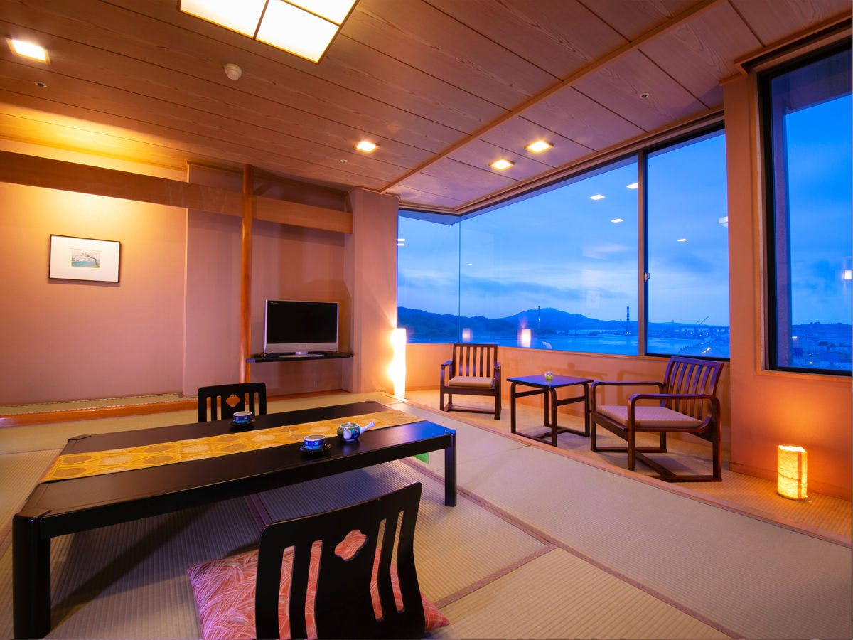 ・和室タイプの中でも最も広く、 大人数でも存分に手足を伸ばしておくつろぎいただけます・山側のお部屋につき、港のざわめきは控えめ。 お値段も抑えめの広々和室です。・禁煙確約のお部屋です。