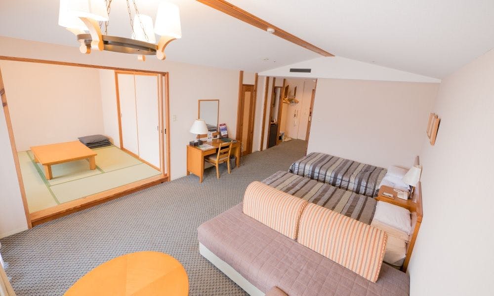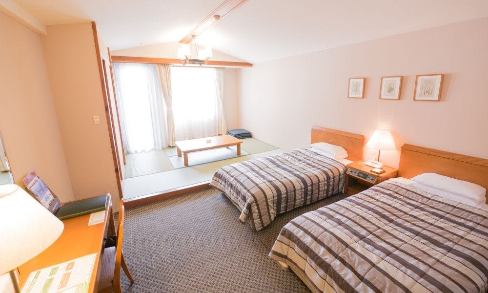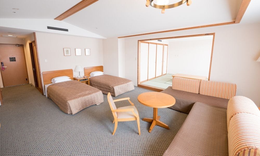 2019年7月リニューアル!ツインベッド+和室6畳の和洋室です。