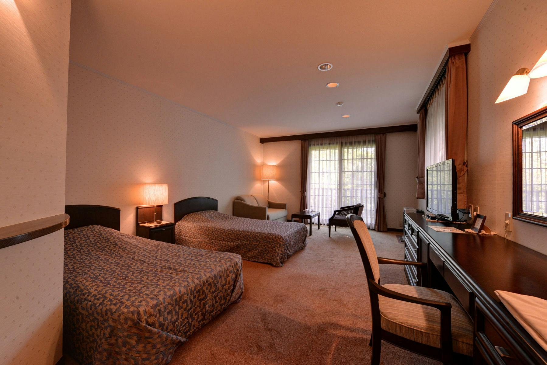 那須連山を一望できるマウンテンビューのお部屋3名まで宿泊可能なスーペリアツインルーム【33平米】。少し広めで窓の多い角部屋で、山々が眺望できます。無線LANも無料で使用可能。女性に嬉しい広々としたパウダールームをご用意。※トイレ付き※ペットをお連れになる方は条件付きとなりますので、事前にご相談ください。