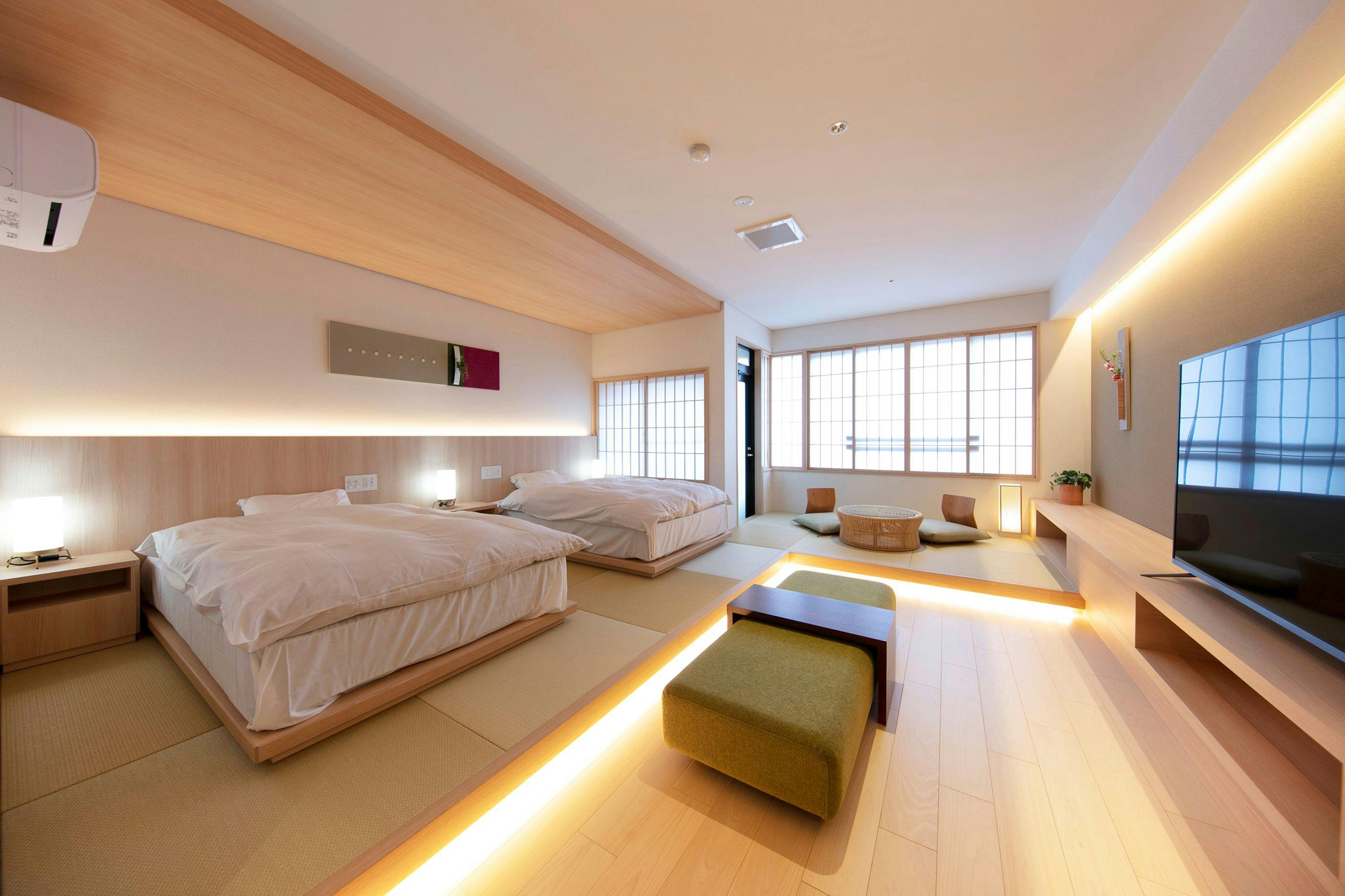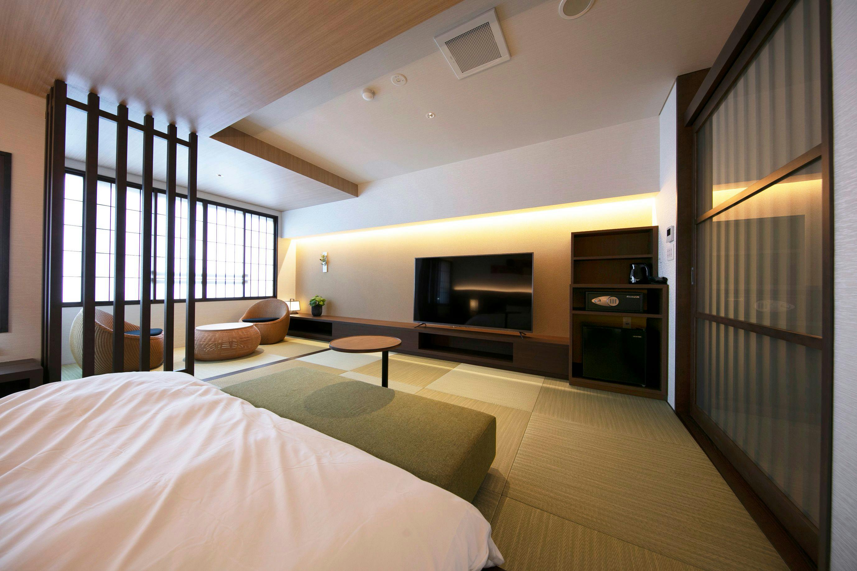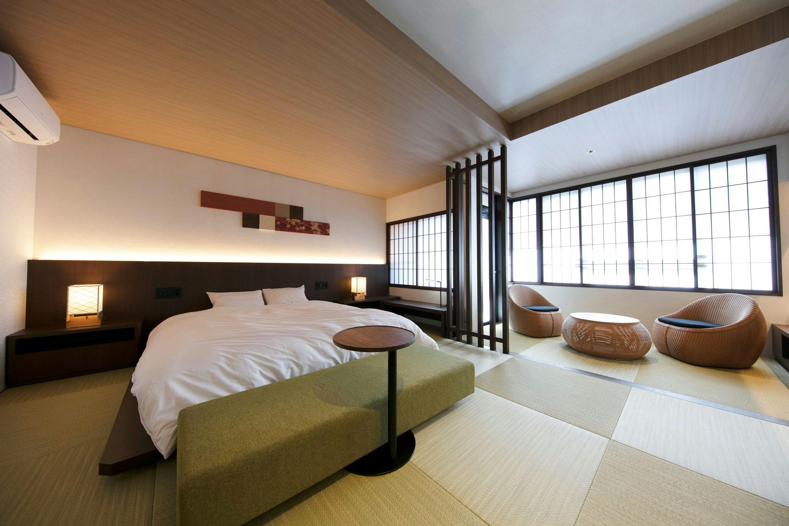 通常客室と比べると部屋は大きめで、次の間があるため5人以上でお泊りいただいても十分な広さのお部屋となっております。