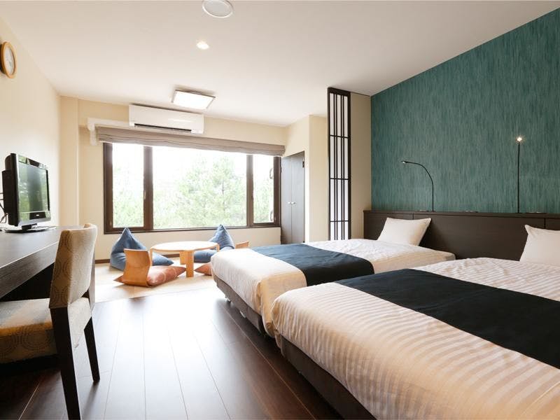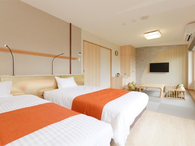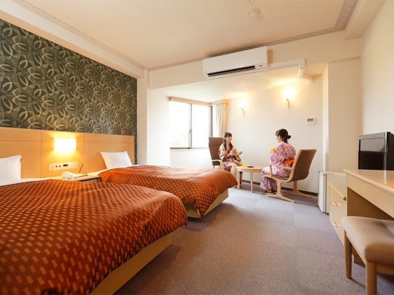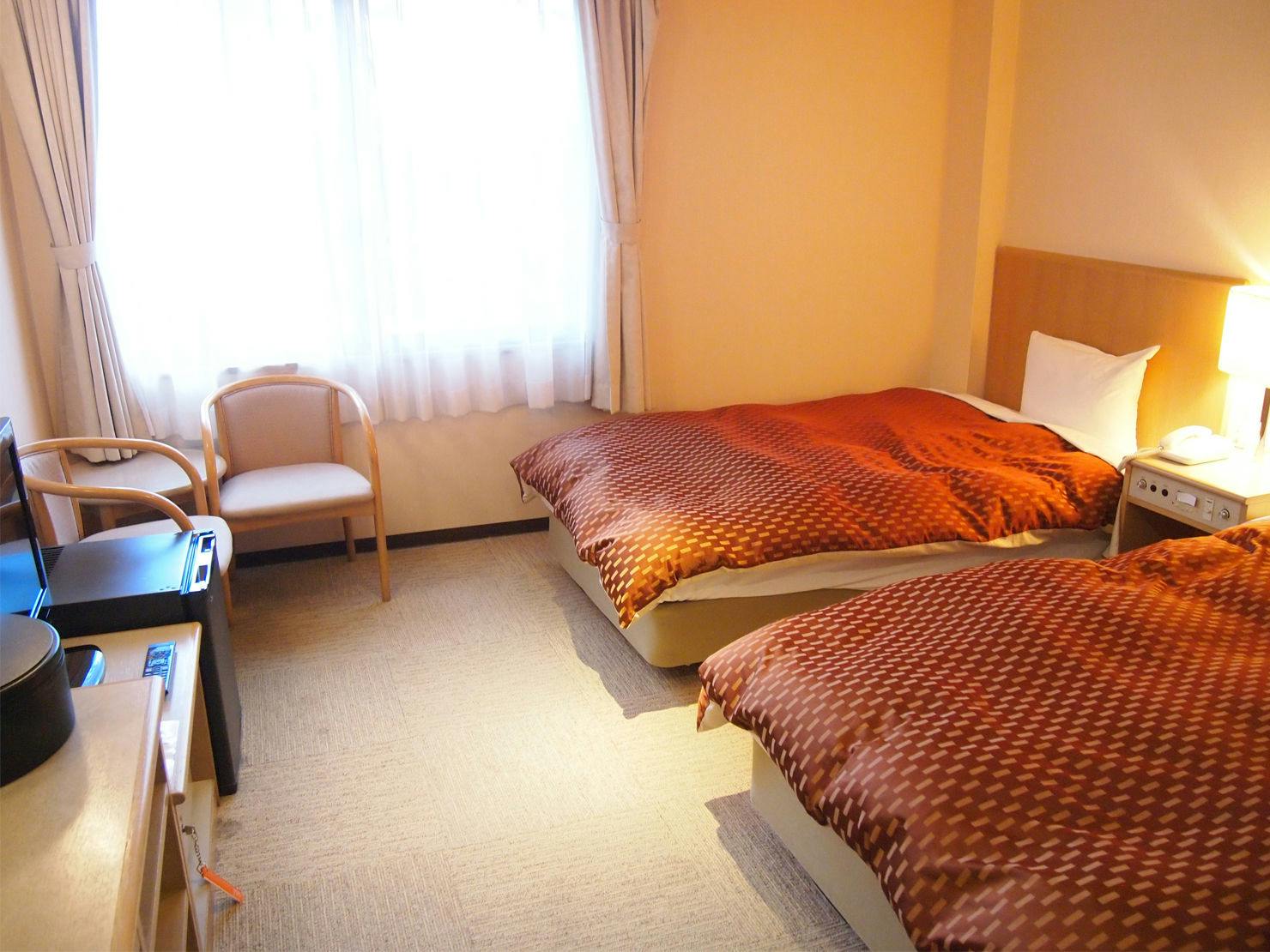 定員人数2名(ツイン)ベッドサイズW 1100mm × D 2000mm客室アメニティグッズ湯沸かしポット / シャワー付トイレ / テレビ / 冷蔵庫 / 電話 / 冷暖房 / 衛星放送 / 石鹸 / ハミガキセット / タオル / バスタオル / 浴衣 / スリッパ / お茶セット / ポット / 冷水 / 茶菓子