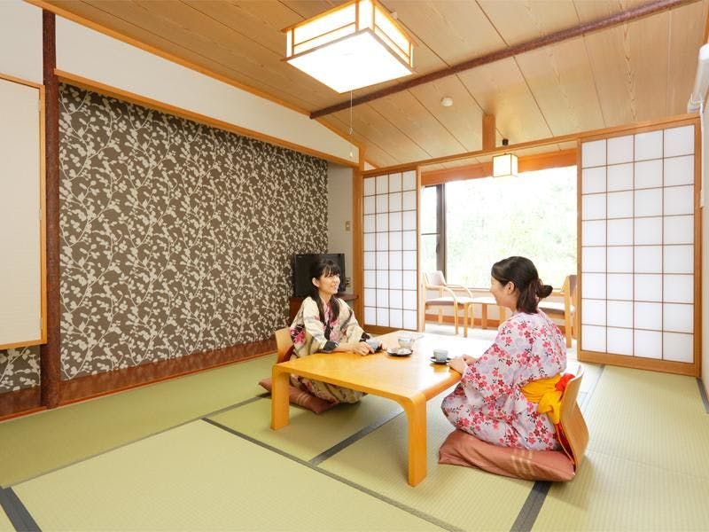 最大4名定員客室内アメニティグッズ湯沸かしポット / シャワー付トイレ / テレビ / 冷蔵庫 / 電話 / 冷暖房 / 衛星放送 / 石鹸 / ハミガキセット / タオル / バスタオル / 浴衣 / スリッパ / お茶セット / ポット / 冷水 / 茶菓子
