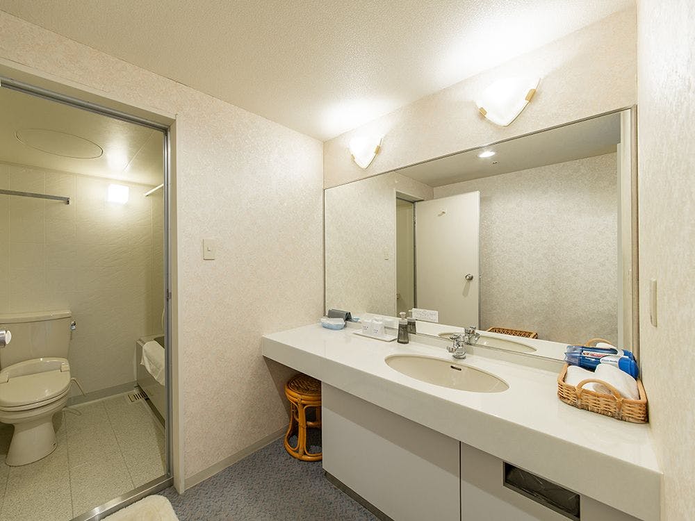 ユニットバス / 温水洗浄機付トイレ / 冷蔵庫(フリースペース) / テレビ / 衛星放送 / 冷暖房 / 金庫 / 電気ポット / 寝具(羽毛布団) / ドライヤー / インターネット接続無料(Wi-Fi、有線LAN) / 丹前 / スリッパ / フェイスタオル / バスタオル / シャンプー・コンディショナー / ボディソープ / ハンドソープ / お茶パック / 衣類消臭スプレー / 浴衣 / 歯ブラシ / ひげ剃り / シャワーキャップ / コットン / ヘアーブラシ / 綿棒