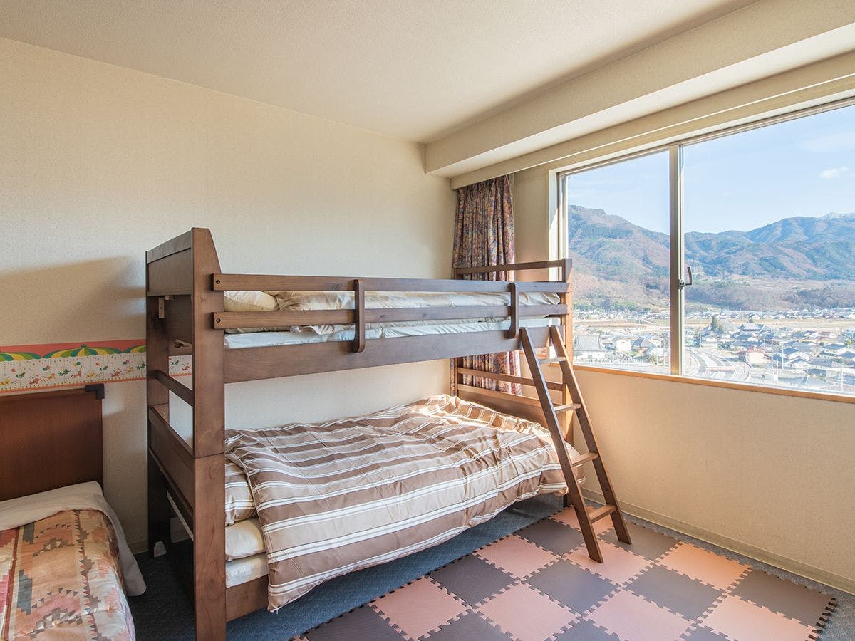 セミダブルベッド2台と二段ベッドが入ったお部屋です。