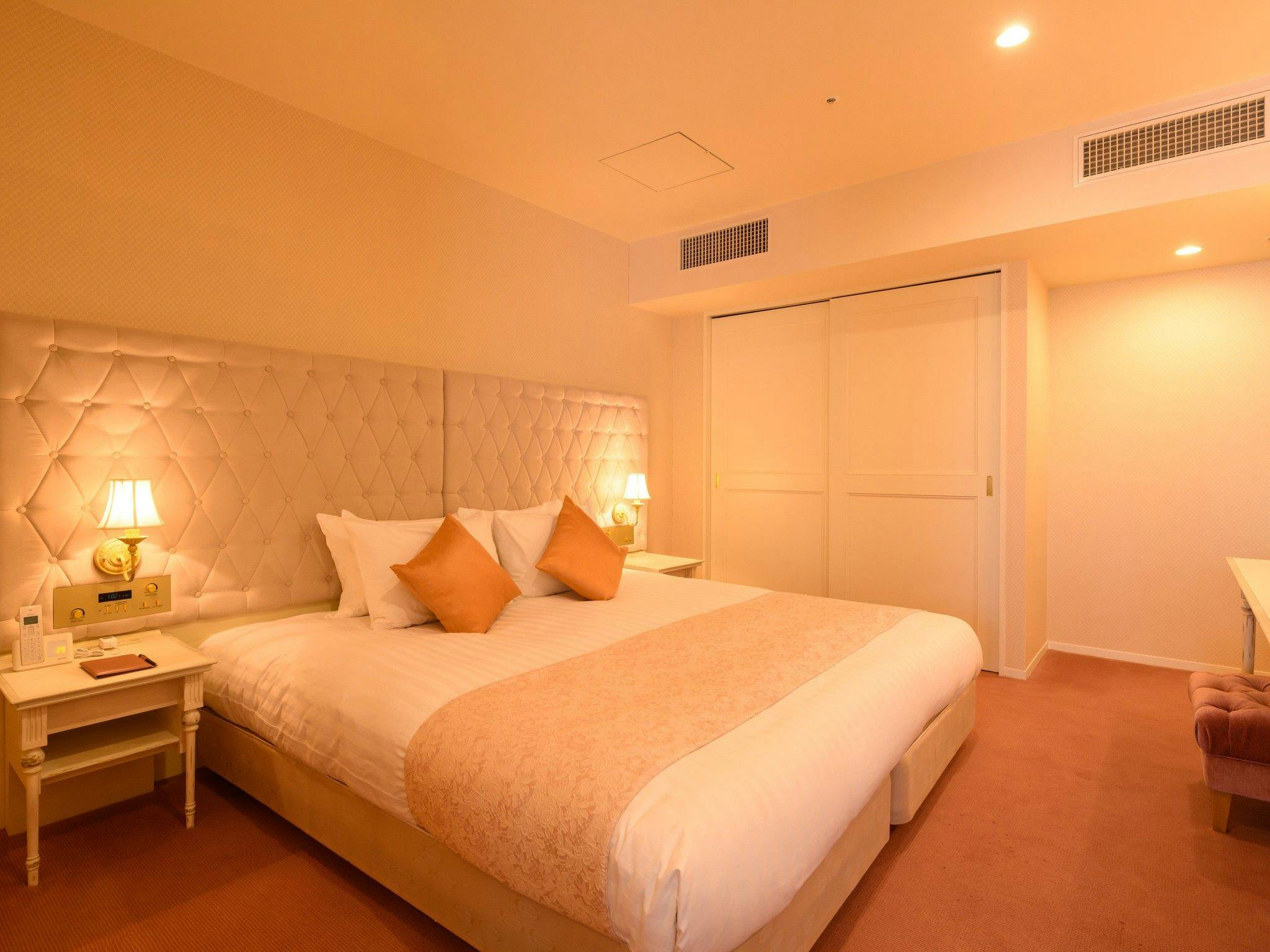 格調高い雰囲気の木目を基調とした空間は落ち着いた重厚感漂う、大人な空間に相応しいクラシカルな家具を厳選。大理石の風合いの感じる床、光沢あるレザーと豪華なファブリック等の素材でラグジァリー感いっぱいのお部屋。
