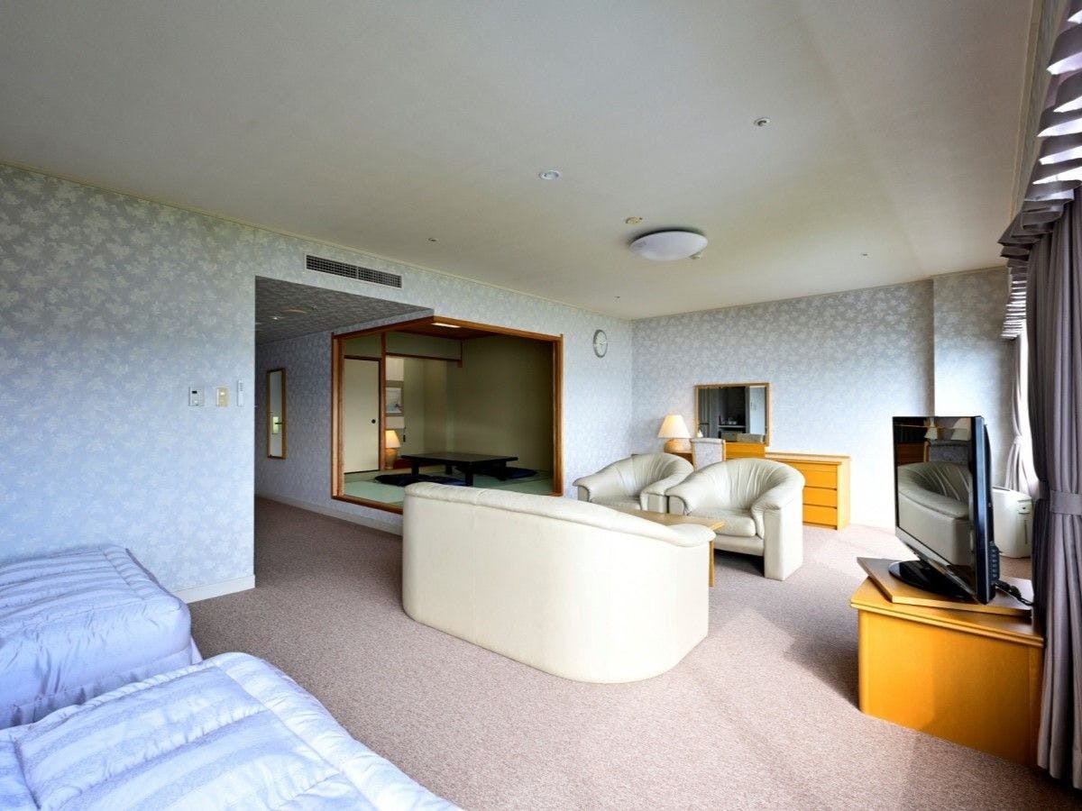 ●広々とした約72平米の空間の中に、約8畳の和室部分を備えた和洋室タイプのスイートルーム
