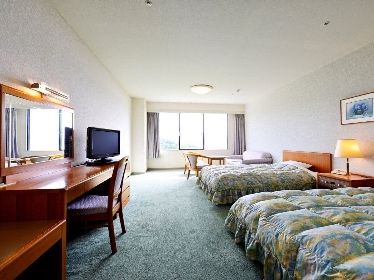 ●ゆったりサイズのツインベッド(120cm幅×200cm)×2台及び、3・4名様利用の際はお布団を2組ご用意致しますが、正ベッド2台、ソファベッド1台、布団1組というタイプの和洋室でご用意する場合もございます。