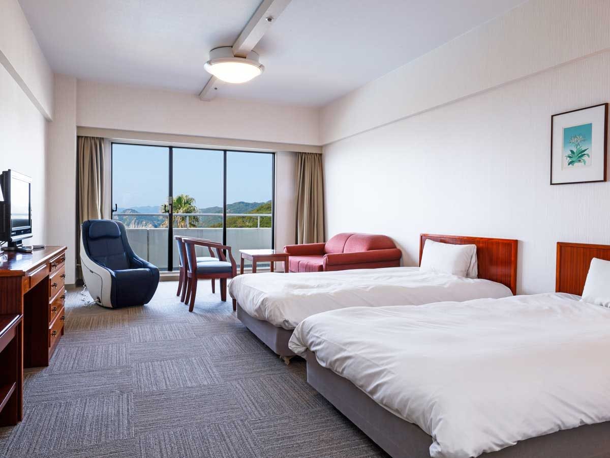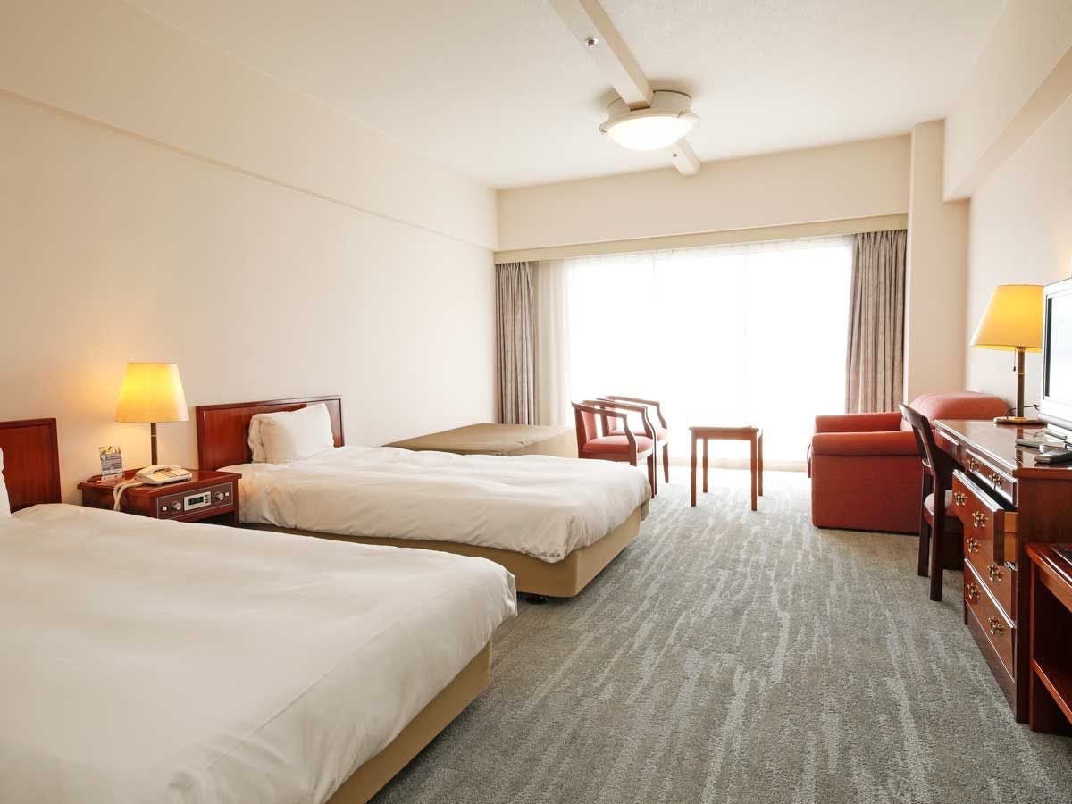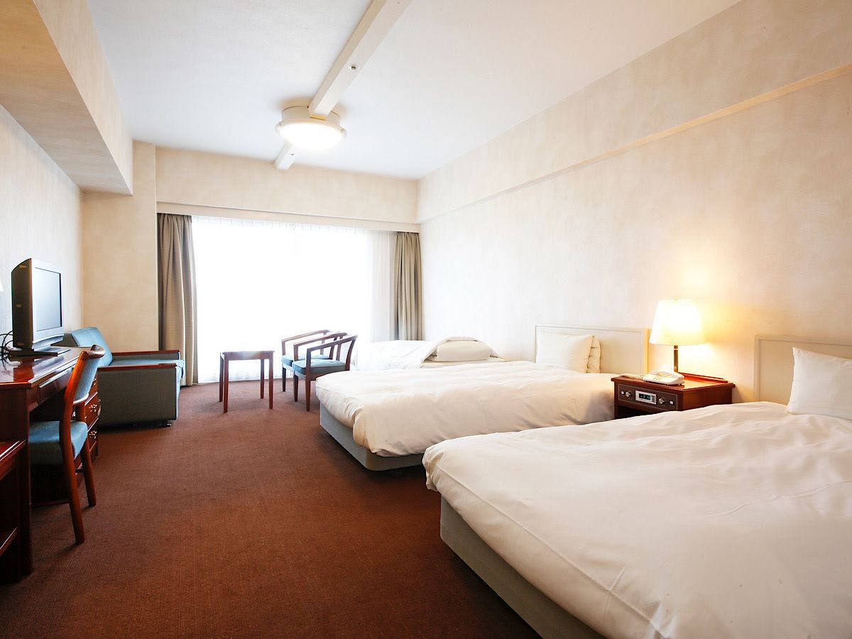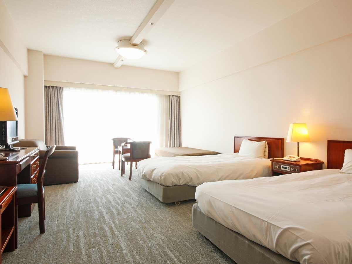広さ35平米とゆったりサイズの禁煙洋室客室です。1室3名様までご利用いただけるスタンダードランクのお部屋です。ベッドは120cm幅のセミダブルサイズベッド2台と、ご利用人数に応じてエキストラベッド(シングルサイズ)を1台ご用意致します。