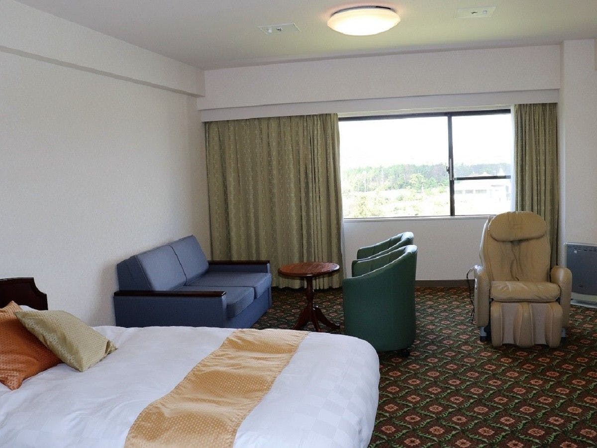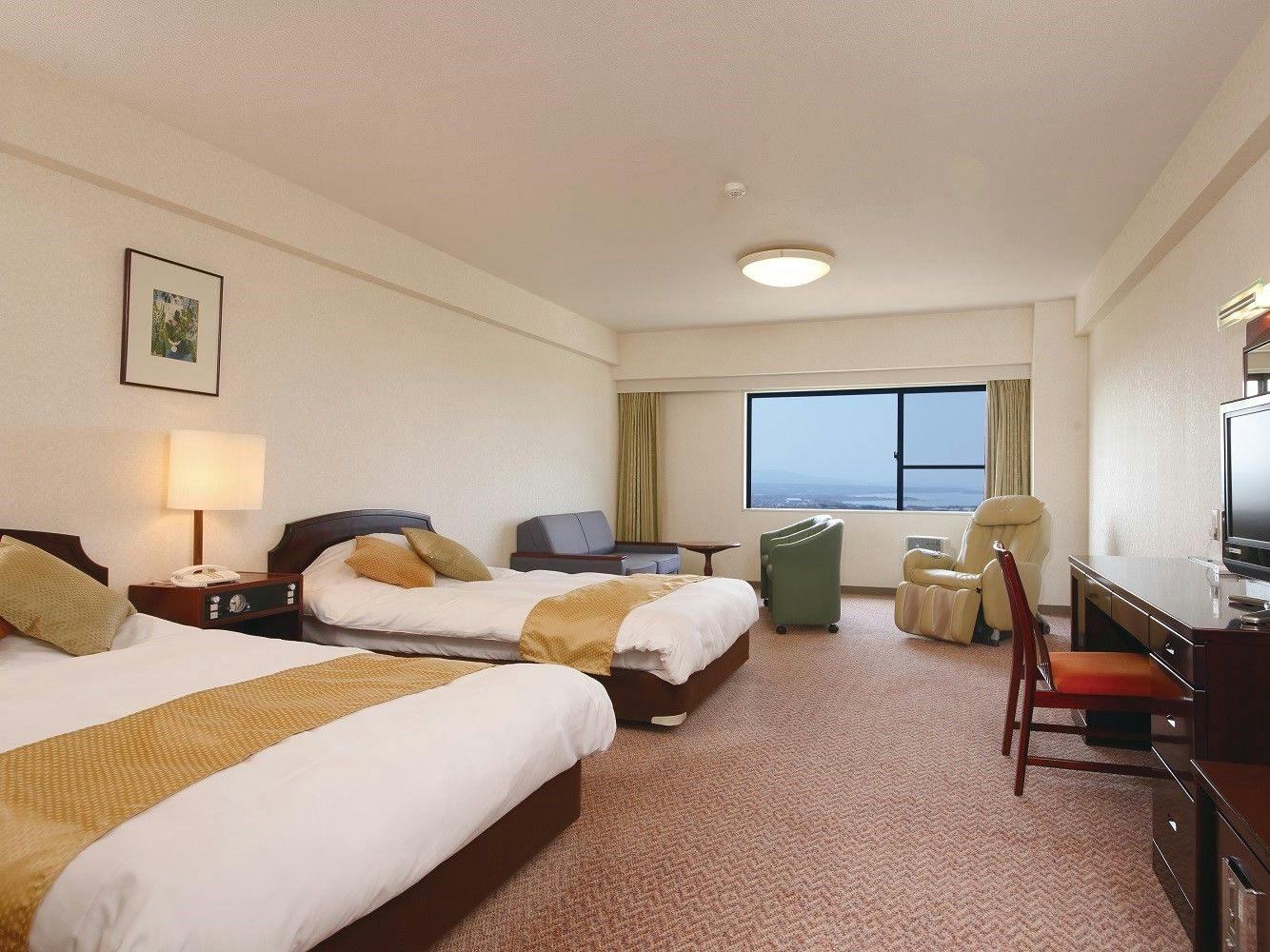 ツインベット(120cm幅)×2台。マッサージチェア&空気清浄機&有線LAN設置。