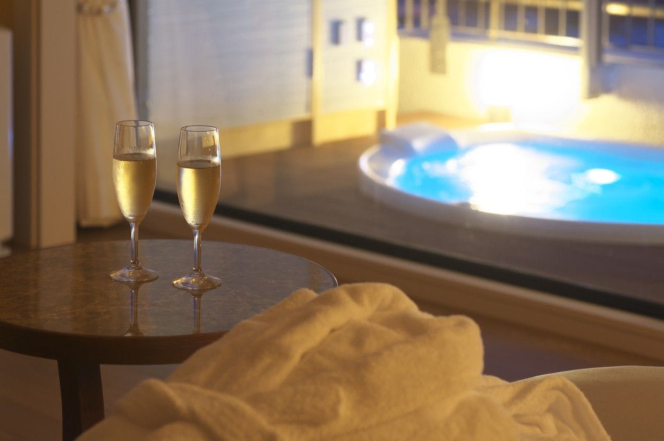 洋室ならではのスタイリッシュな快適さを感じられるジェットバス露天風呂付客室。