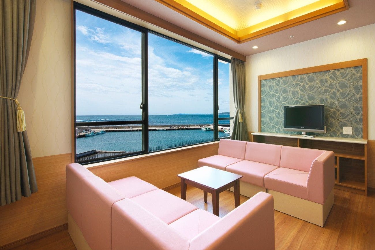 海一望の解放感に満ち、優雅な寛ぎを感じられる貴賓室でワンランク上のご滞在