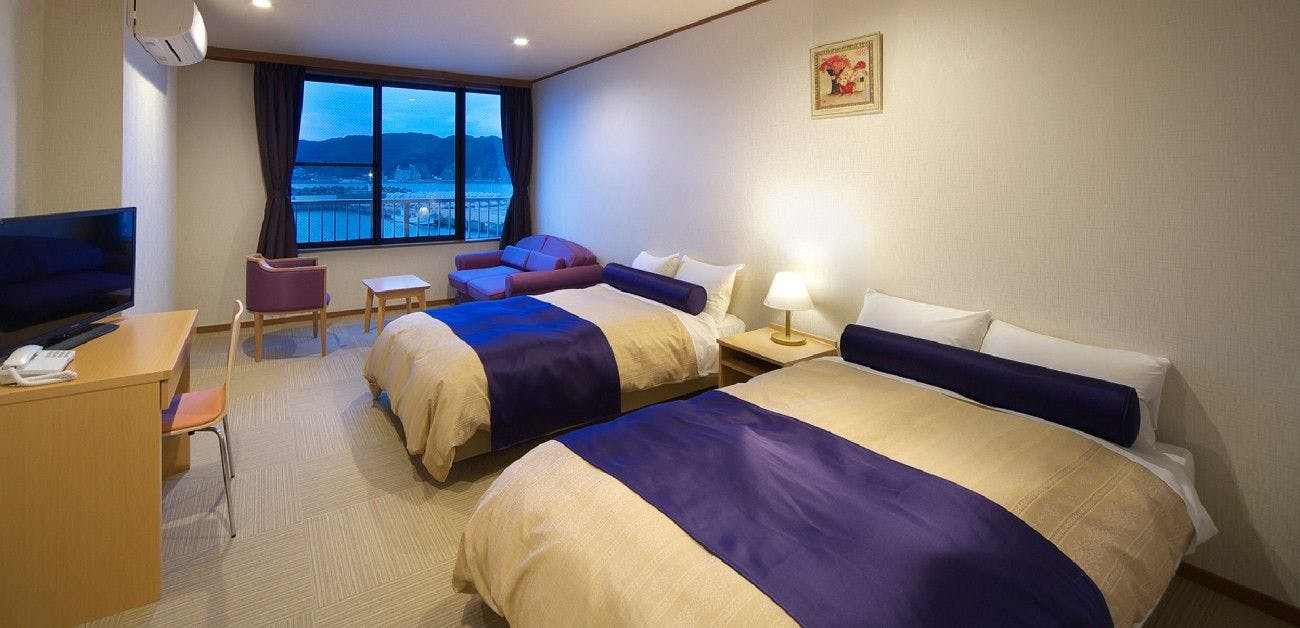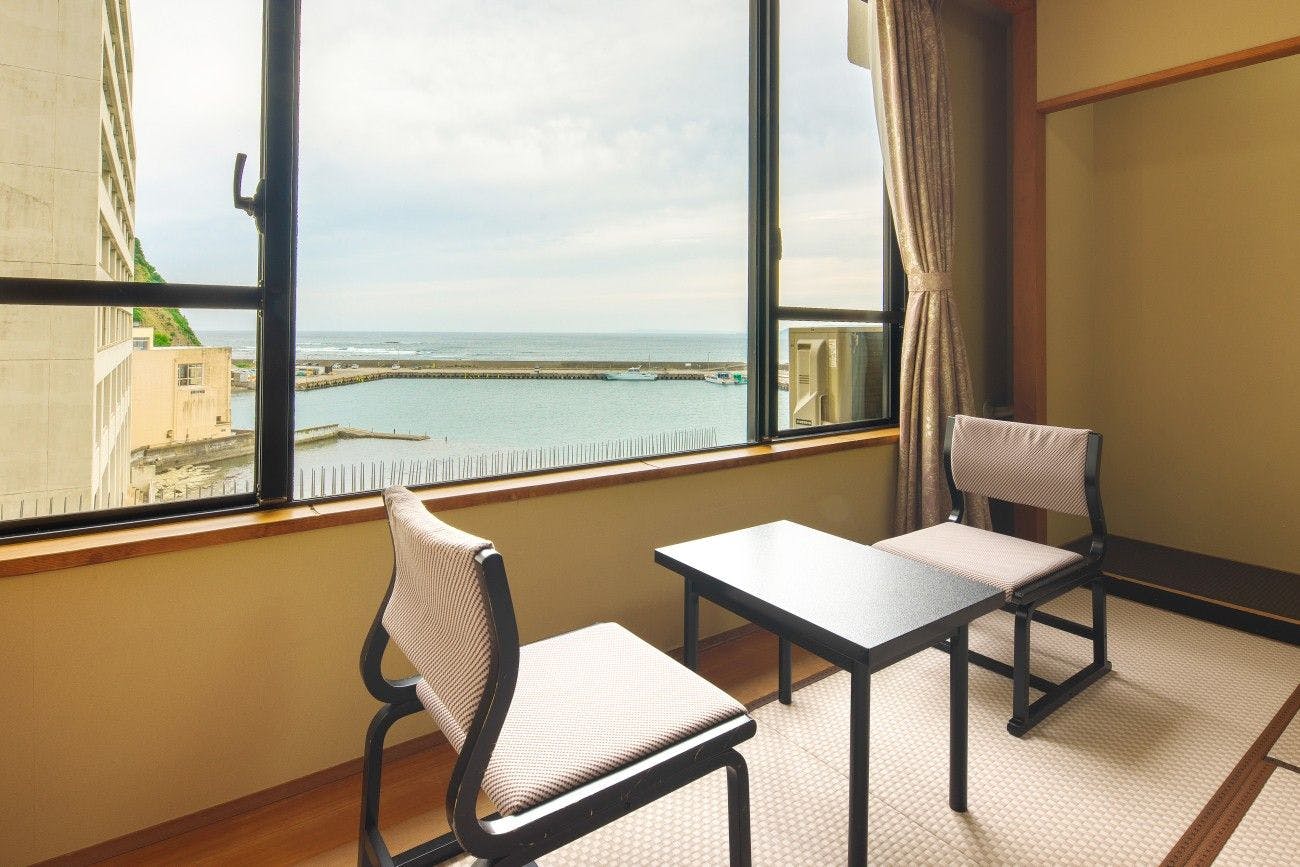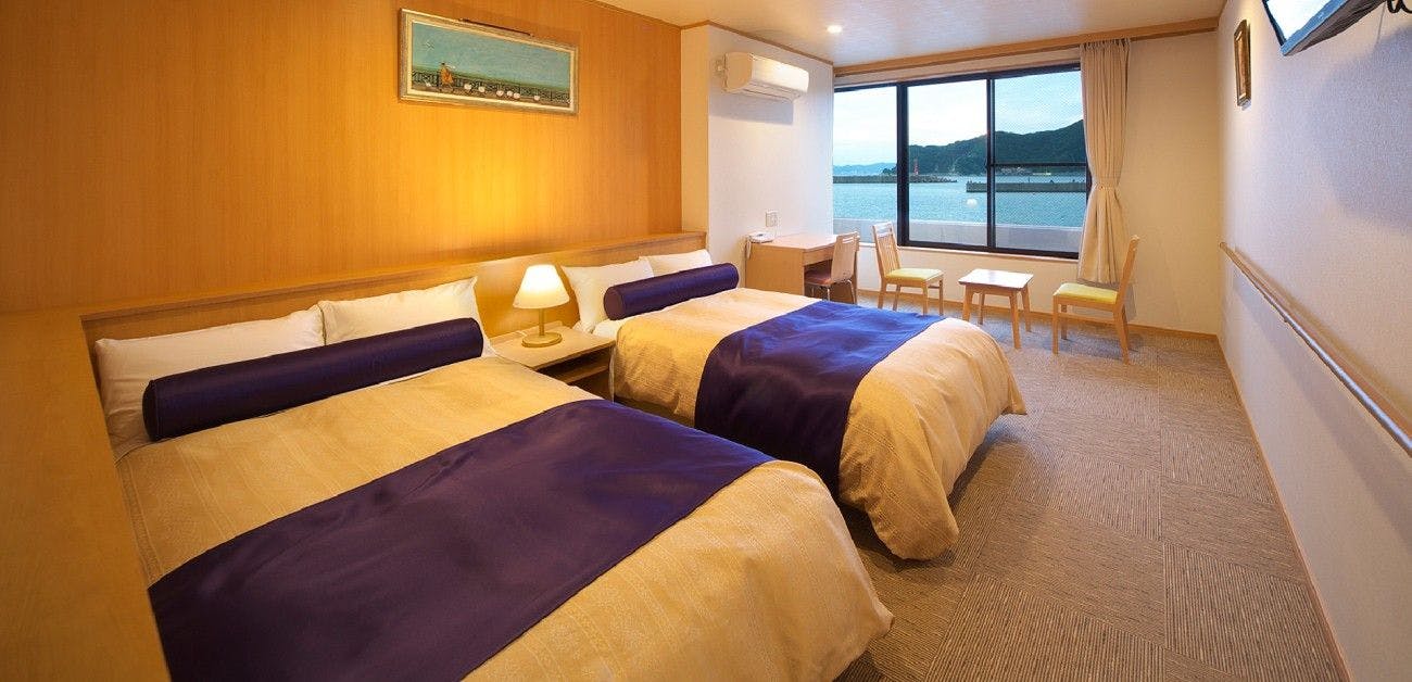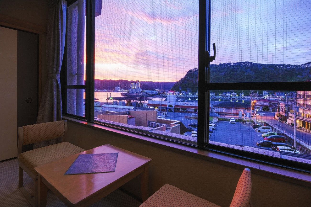 夜は漁港の明かりが綺麗なため、リピーターのお客様もいらっしゃる密かに人気の客室です。