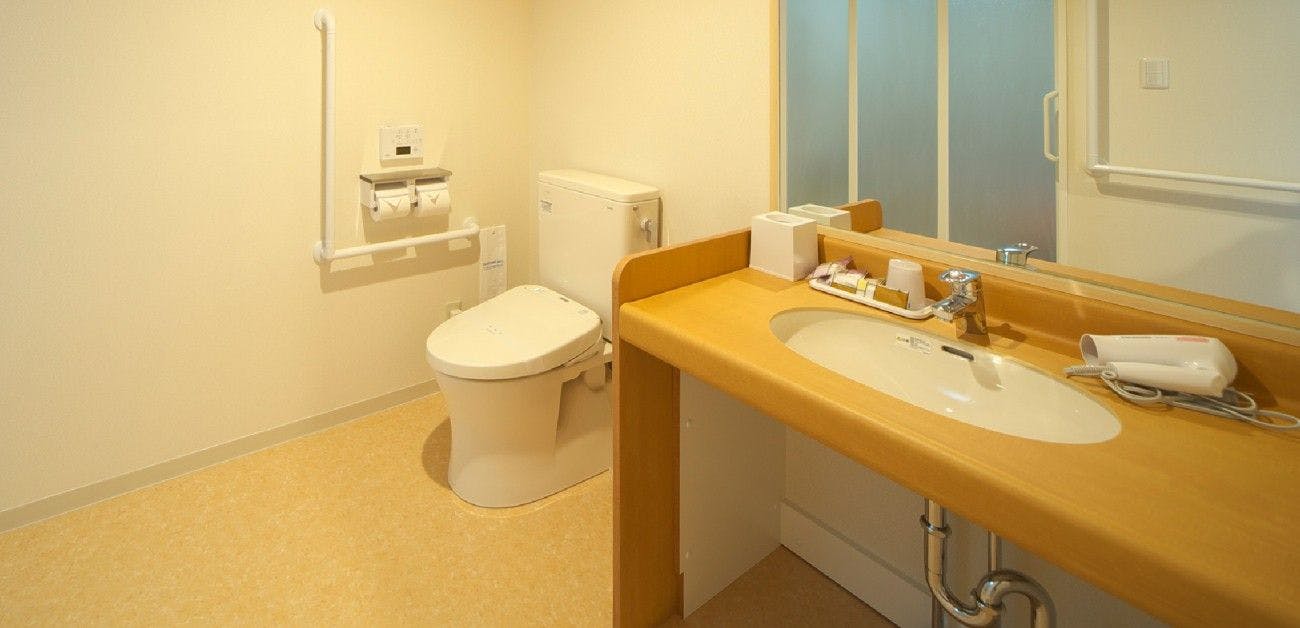 バスルーム・浴槽内はもちろん、お部屋にも手すりが付いて身体に優しいフラットルーム。