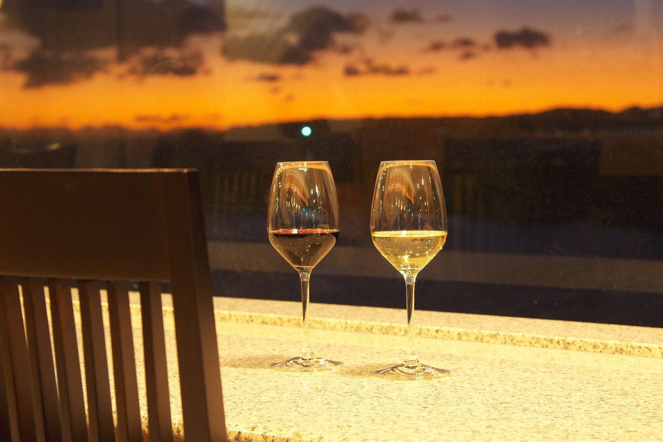 綺麗な夕日を見ながら、お部屋でも乾杯