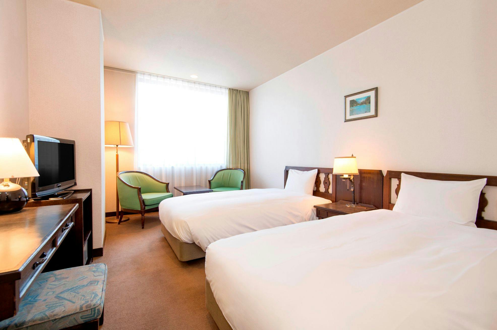 心地よさと美しさを巧みに取り入れた洗練の客室。窓にはカラマツ林、静寂と余韻をたたえた落ち着き。格式あるインテリア、行き届いたサービスとともに、高級リゾートホテルとしての安らぎと憩いをお楽しみいただいております。