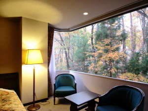 ちょっと贅沢な二人のくつろぎ。和田野の森が一望。バス・トイレ付。
