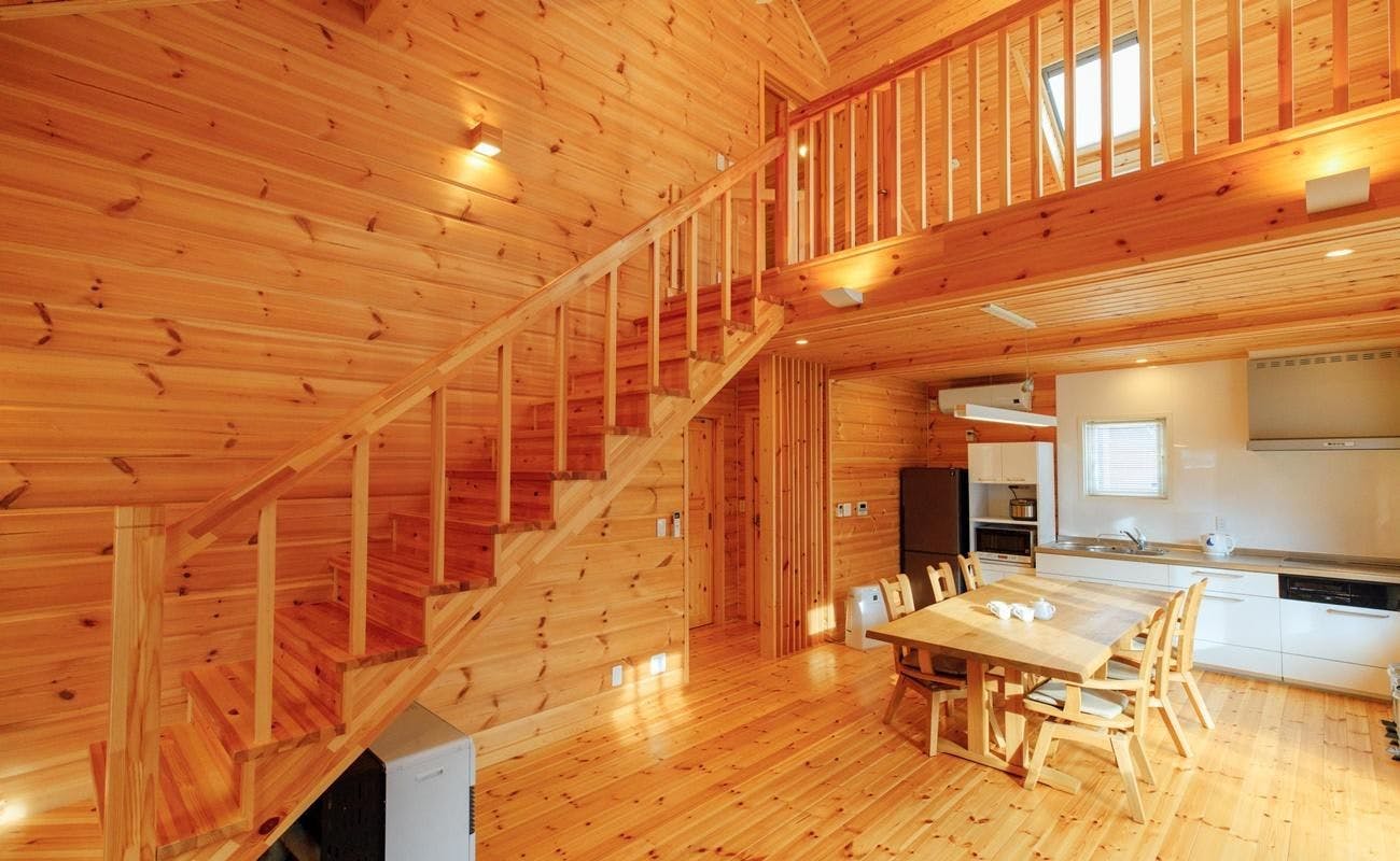 2階建のALLベッドタイプ。簡易キッチンをあしらったスタイリッシュな大人のコテージ。