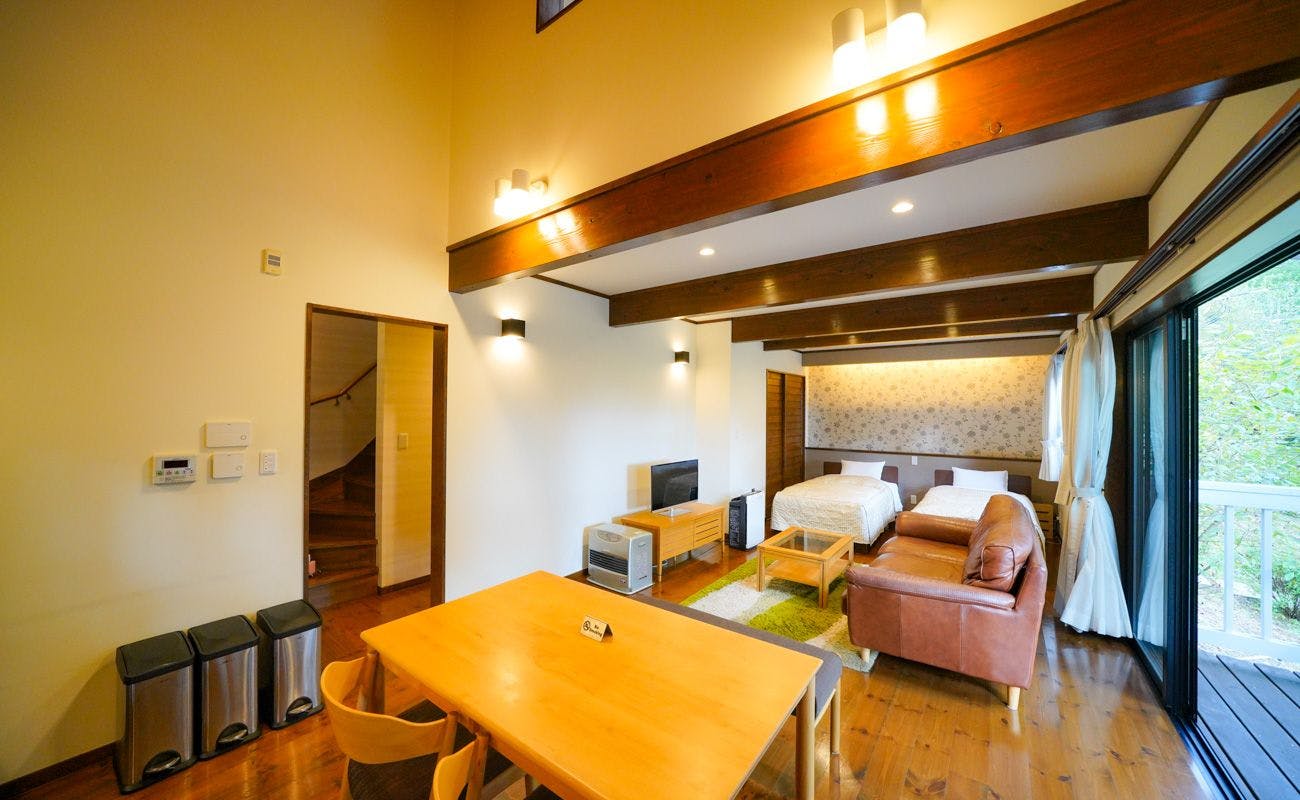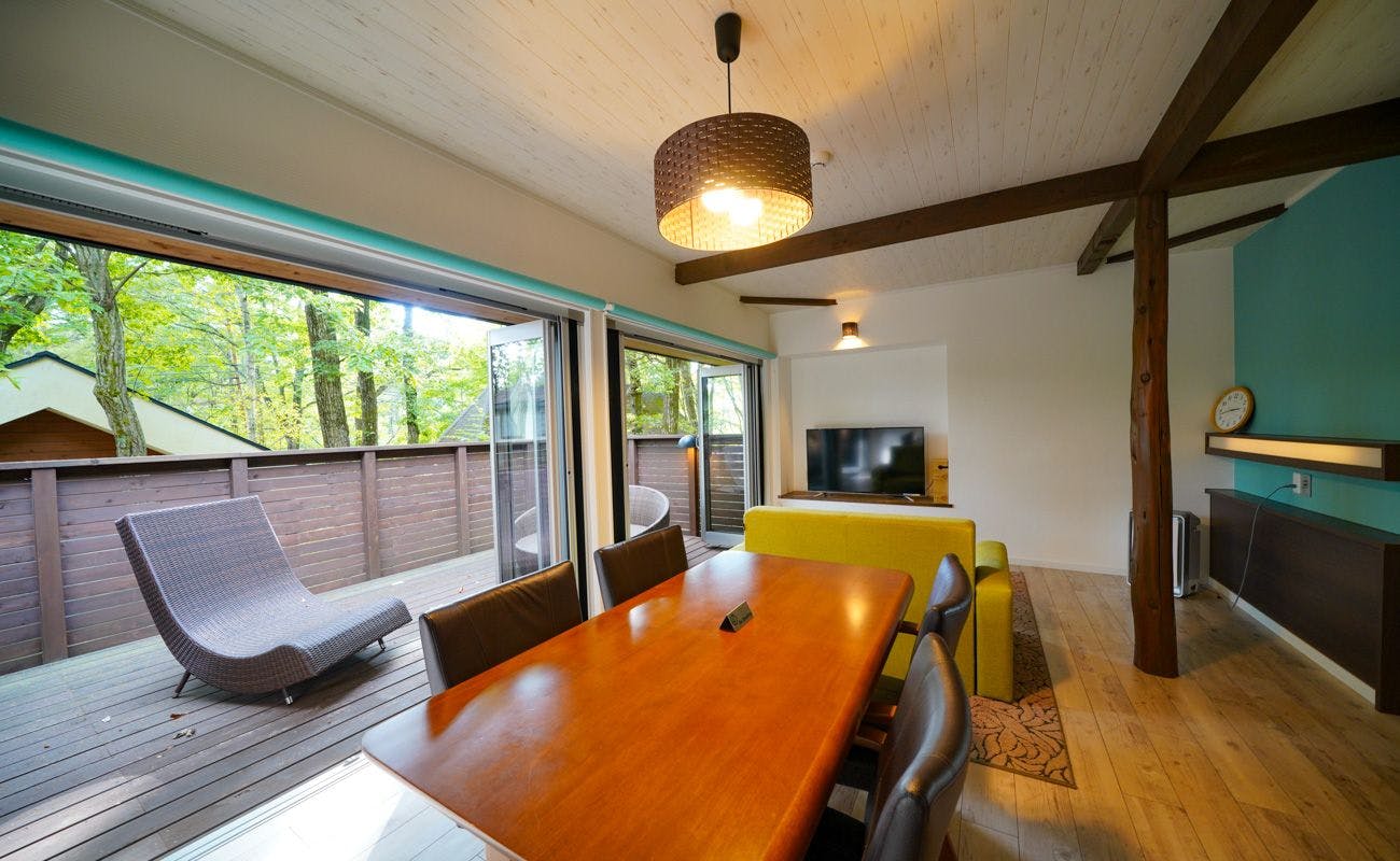 広々テラスや屋外バス(グリーンシーズン限定)など開放的な間取りはカップルや女性同士にお薦め。