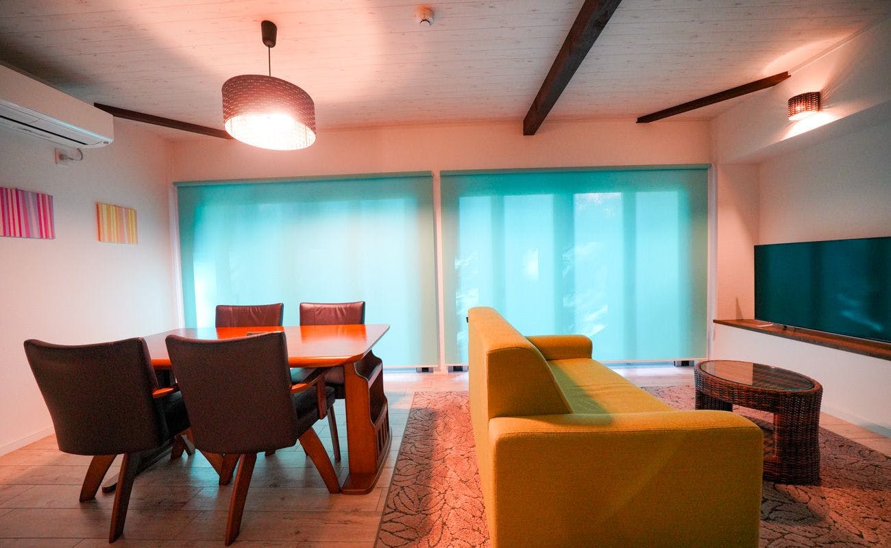 ポップな家具とゆとりのリビングダイニングでは時間も忘れて仲間とのひとときを満喫できます。