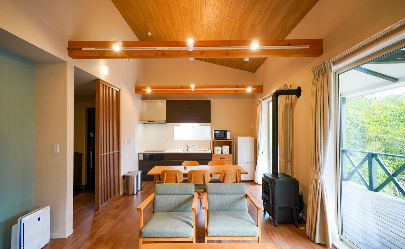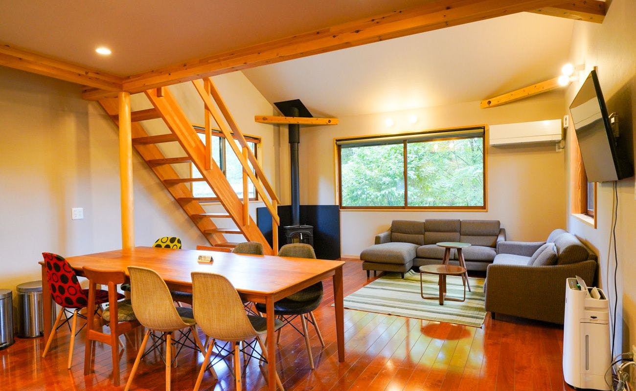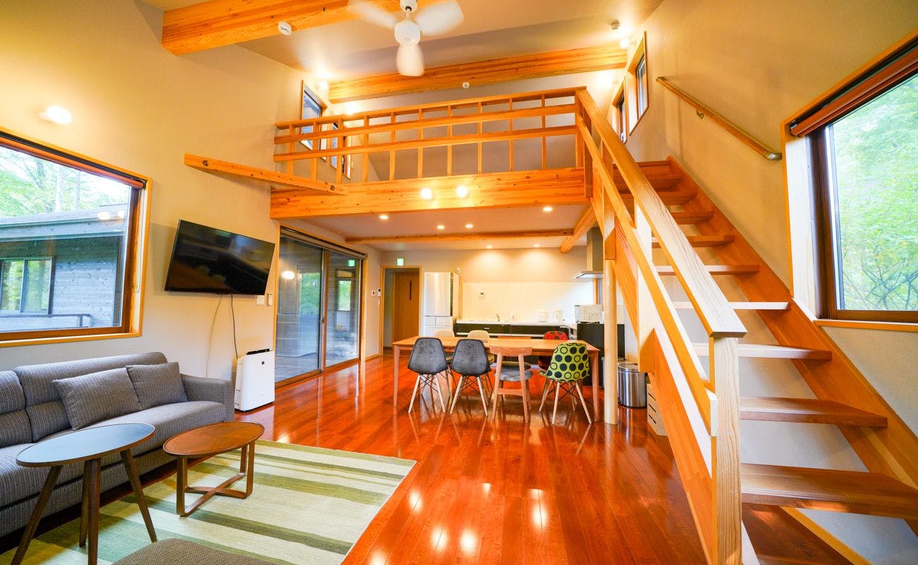 標高1,100m以上の環境にある、自然に包まれたコテージ。お食事は和食会席や、ケータリング、バーベキューなどお選びいただけます。一軒家をまるまる貸し切りで、賑やかにお過ごし下さい。