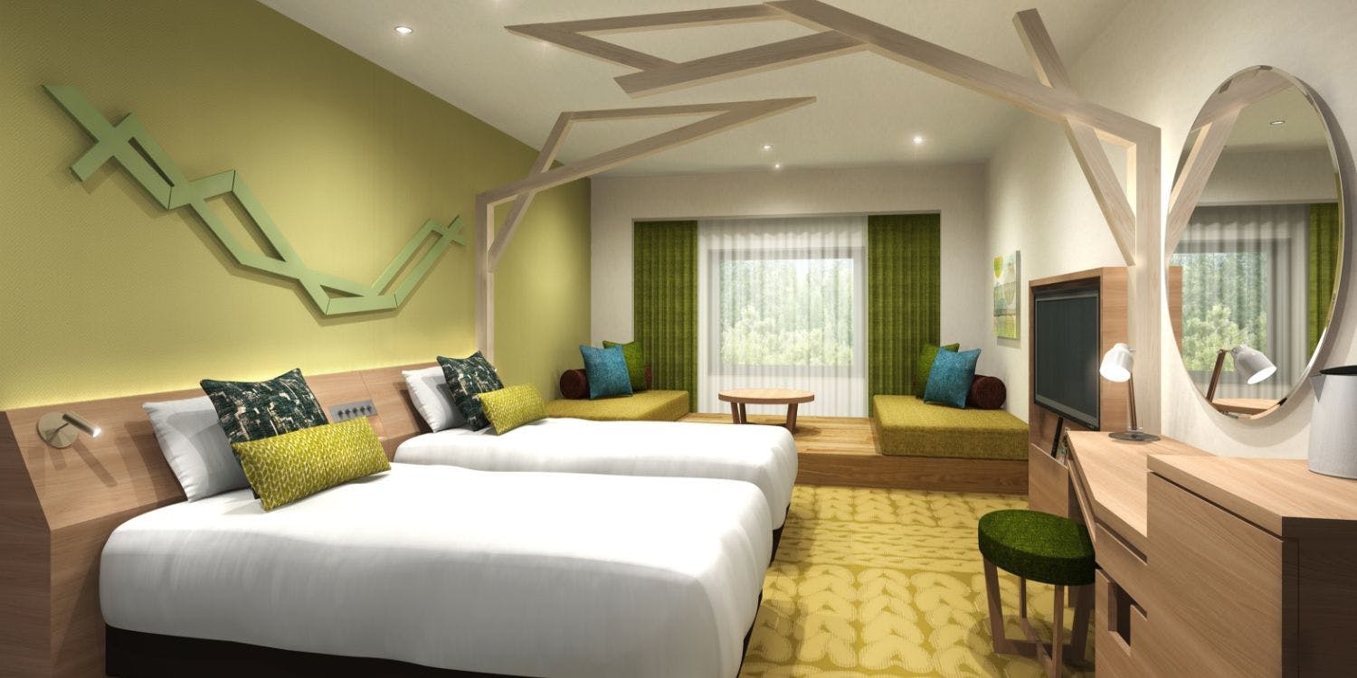 2023年3月22日(水)にくつろぎをコンセプトとした新たなファミリールームをオープンします。もてぎの森を感じながら心地よい森時間に癒されるホテルステイをお楽しみください。