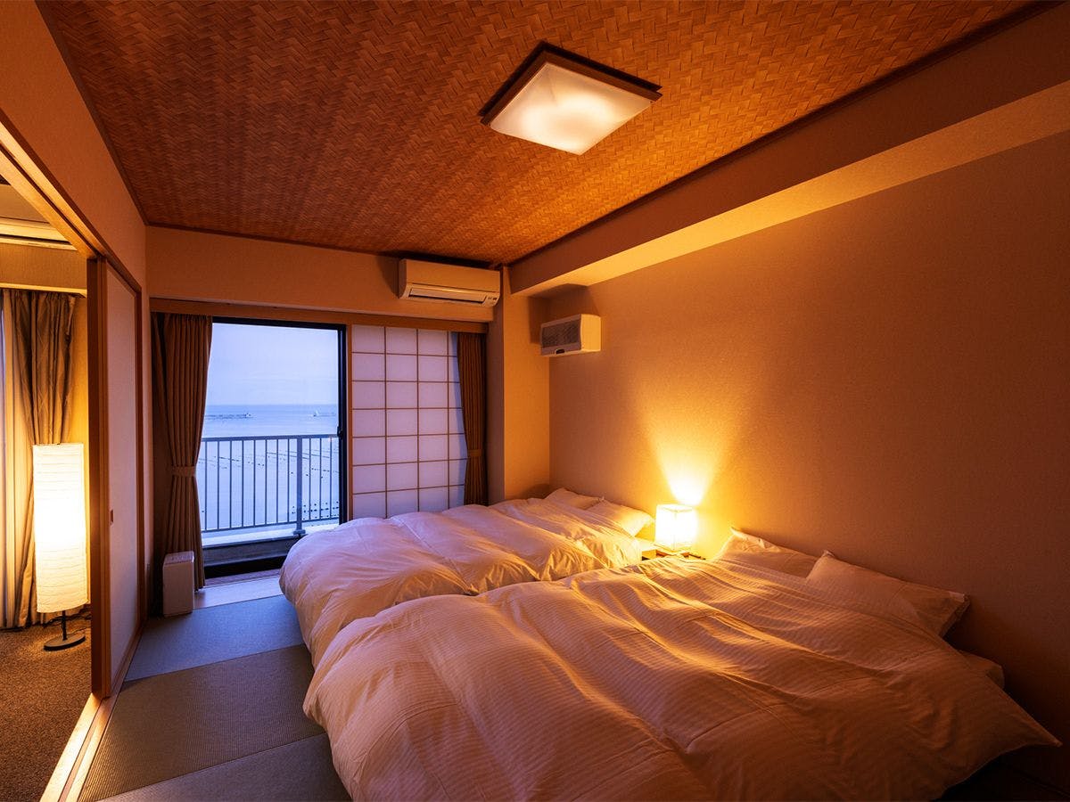 当館<唯一>の二間になっており、ダイニングテーブルとベッドルームに分かれているので足元もラクラク